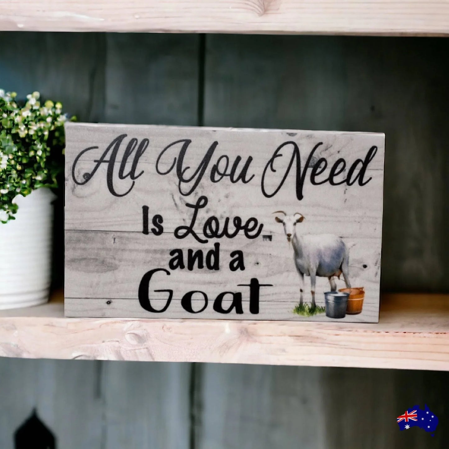 Experience love and whimsy with our All You Need Is Love and a Goat Sign. Let this sign inspire you with its powerful message and charming goat design. A must-have for all goat lovers and believers in the power of love!