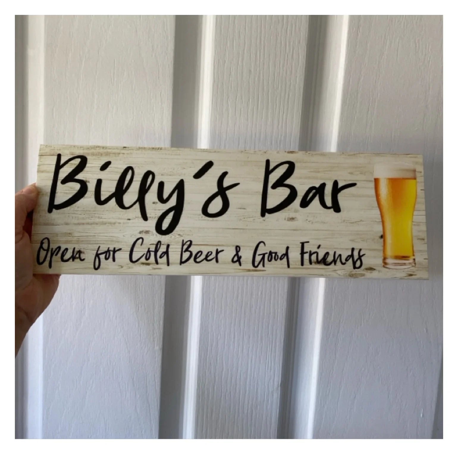 Create a unique and personalised bar sign with your name! Showcase it in your bar, lounge, or entertaining area. Elevate your bar decor with a custom sign featuring your name! Add a personal touch to your space and impress your guests with your attention to detail.