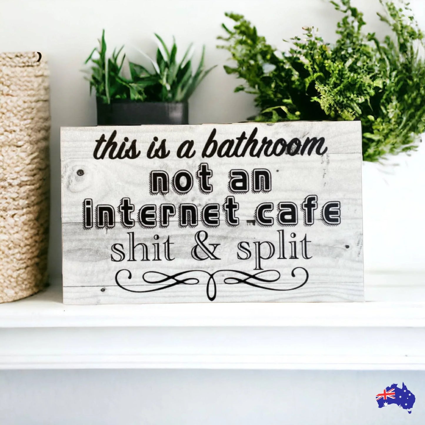 Transform your home into a place of humour with the this is a bathroom not an internet cafe shit and split Sign. Made from Acrylic making it also outdoor suitable, this sign conveys a straightforward message: hurry up using the bathroom (great for teenagers and share houses!) Hang or display it in your bathroom or toilet for a touch of funny but serious message to all household members.