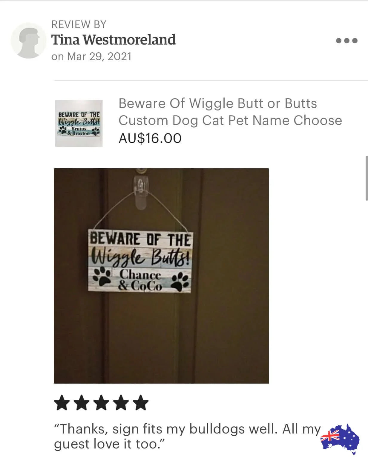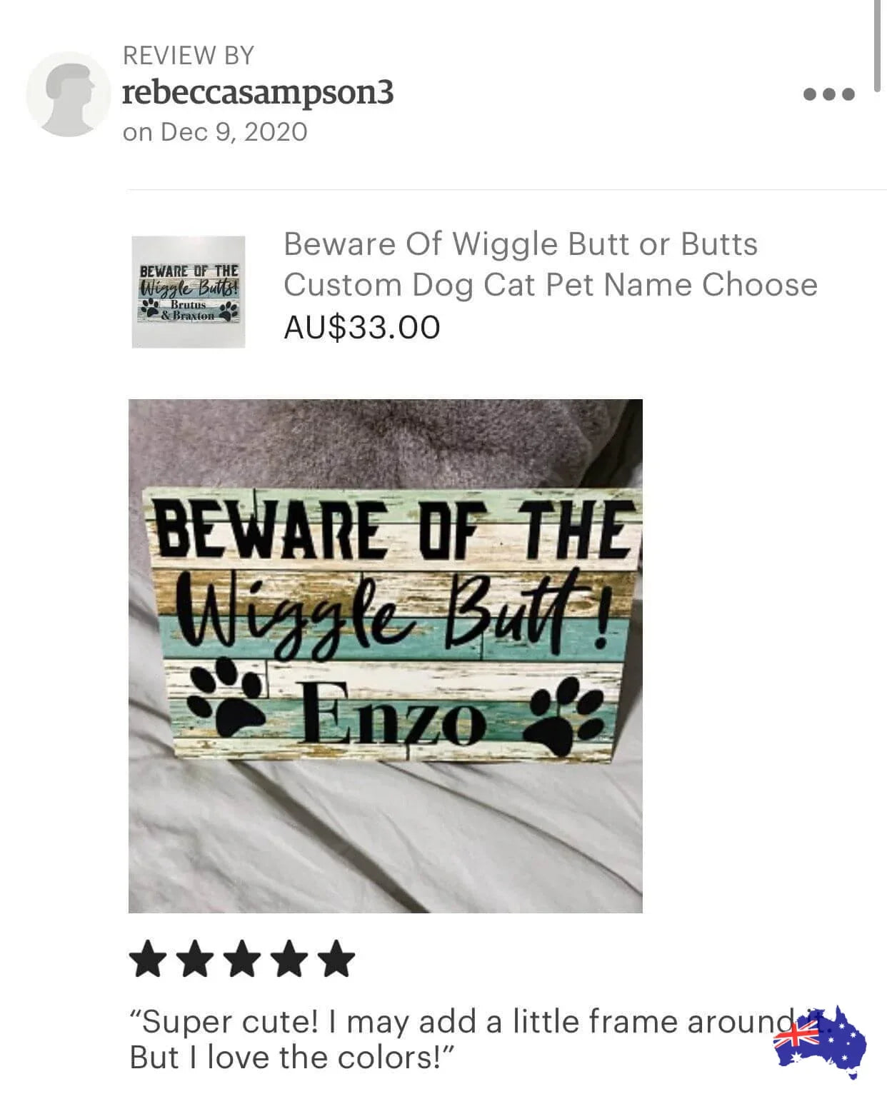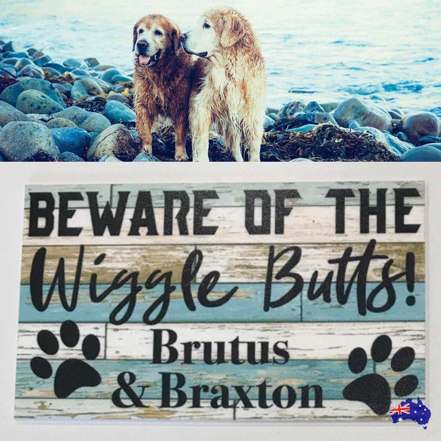 Beware of Wiggle Butt or Butts Dog Custom Personalised Sign