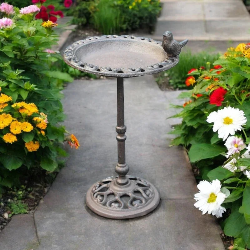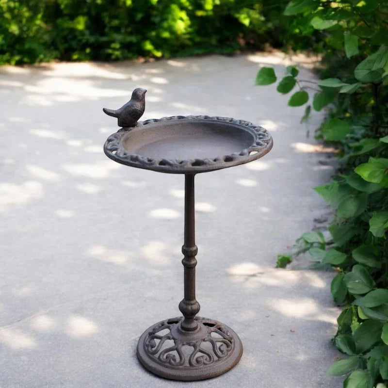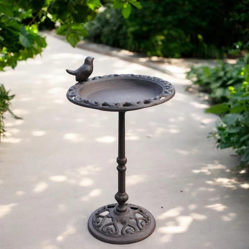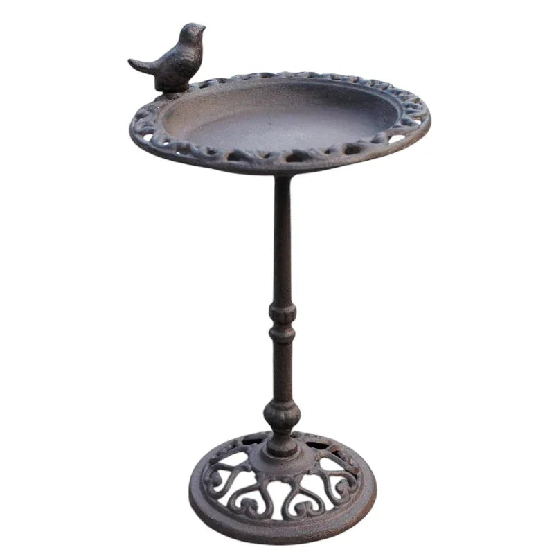 Capture the hearts of bird lovers with this Antique Rustic Bird Feeder Bath Stand Cast Iron Heavy Cast. It promises to age gracefully with rustic charm and stand the test of time! Measuring approximately 38cm Tall x 24.4cm Wide x 16cm at the base, this feeder is crafted from heavy cast iron for endless garden delight.