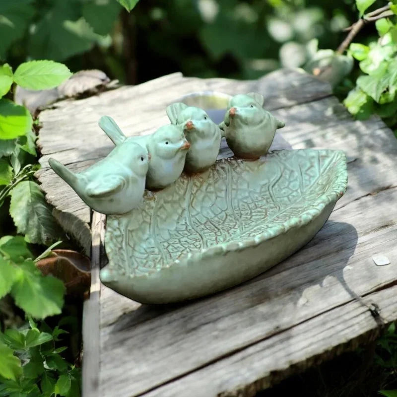Bird Feeder Leaf Ceramic Garden Decoration