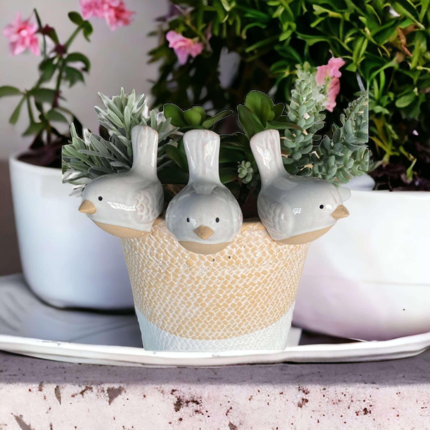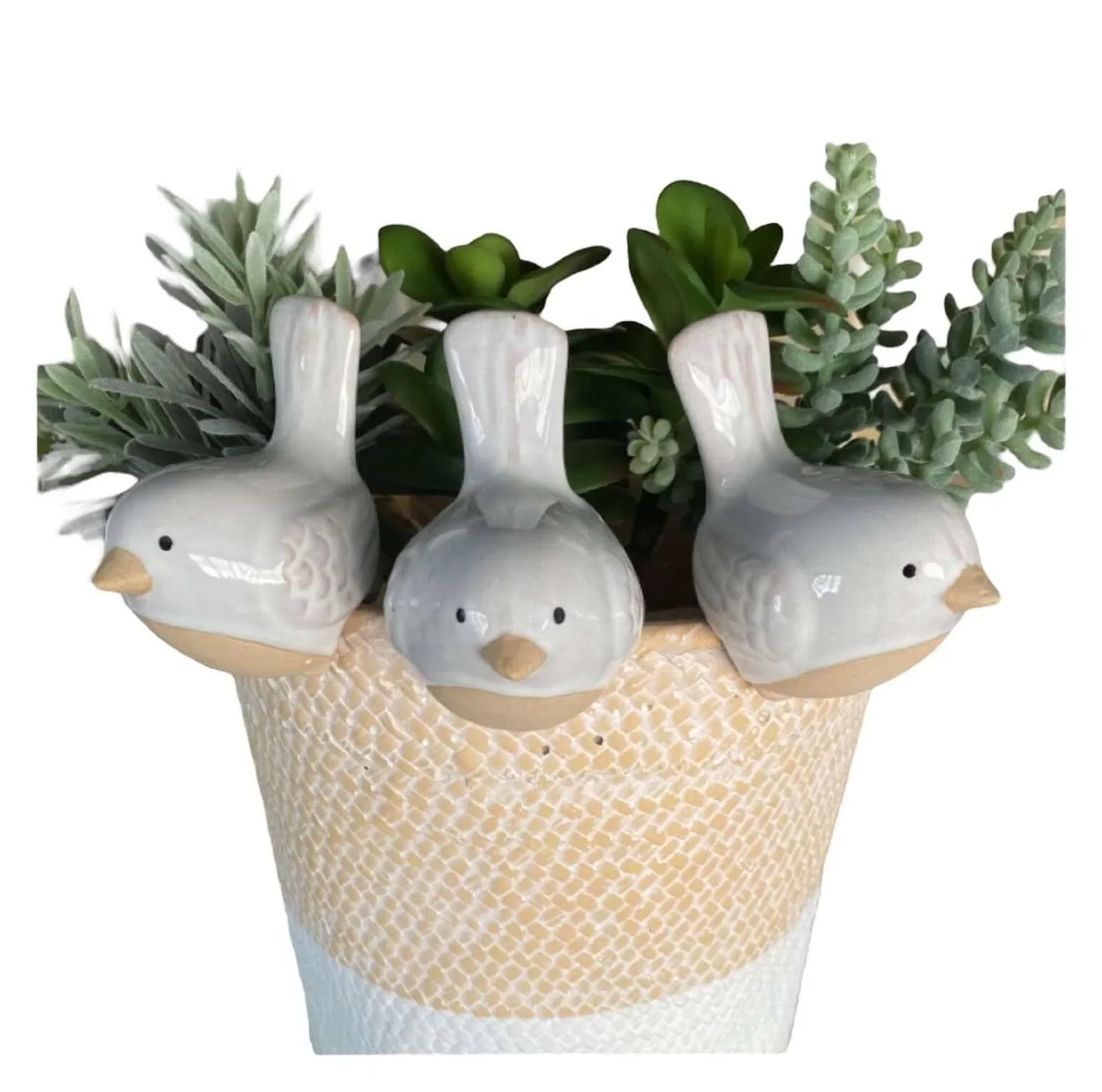 This gorgeous trio of bird pot sitters is a must-have addition for any passionate bird gardener! Hang them from your planters to display your love for feathered friends. Crafted from ceramic, they'll look beautiful both indoors and outdoors. Each one measures 9cm x 6cm. Delight in their charm!