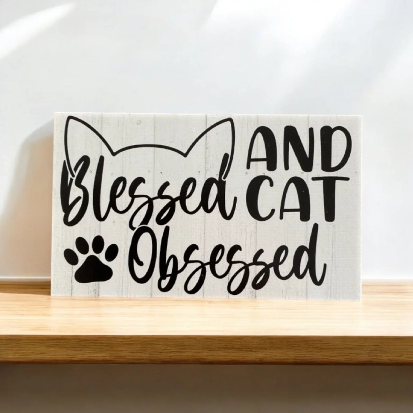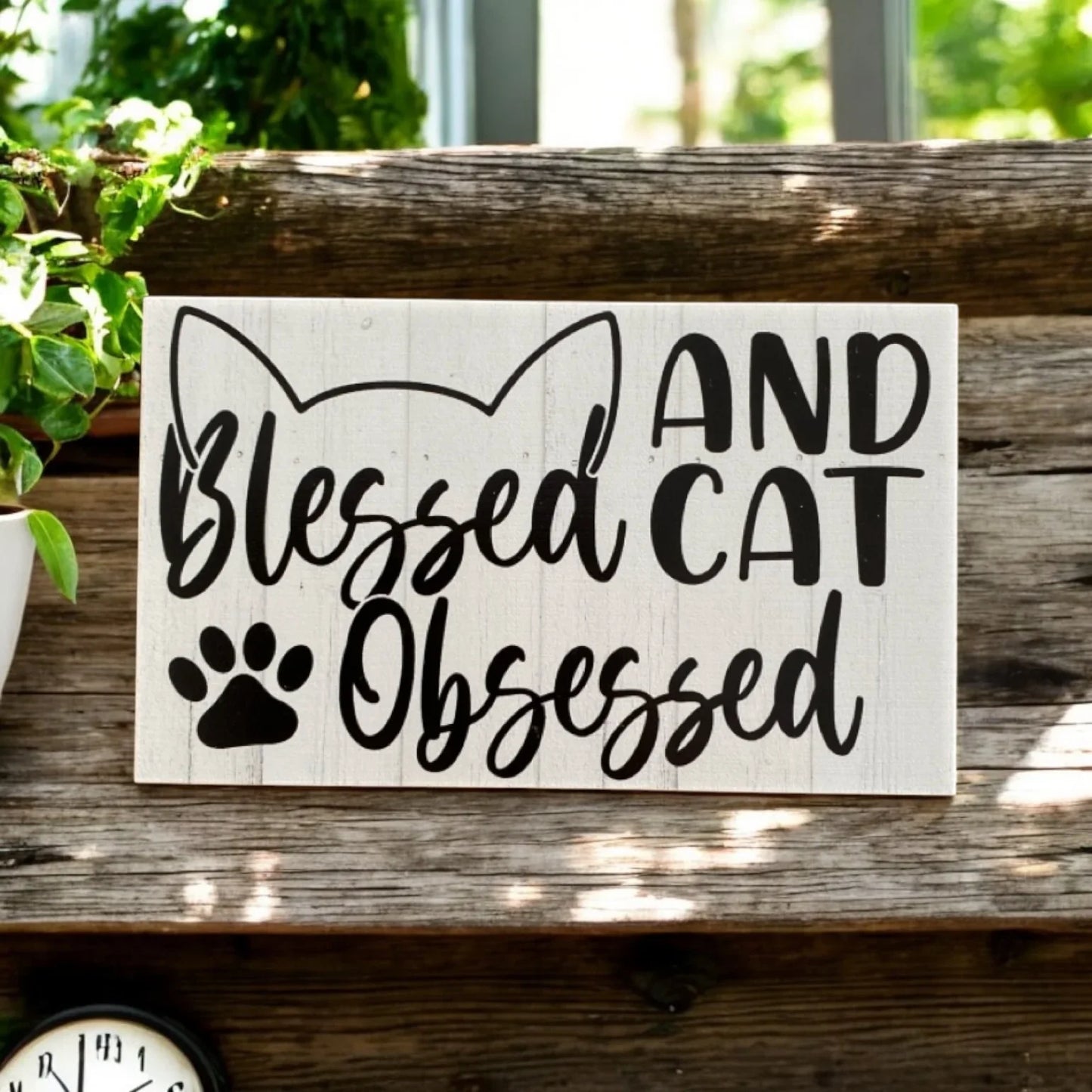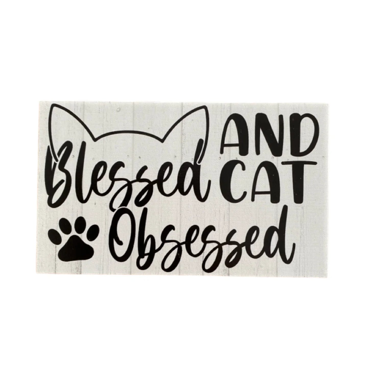 Express your love for cats with this beautifully crafted "Blessed and Cat Obsessed" sign. This charming piece of decor is a must-have for any proud cat owner and will add a touch of personality to any room. Display it in your home or garden as a reminder of the joy and love that your furry feline brings into your life every day. It's the perfect gift for any cat lover in your life!