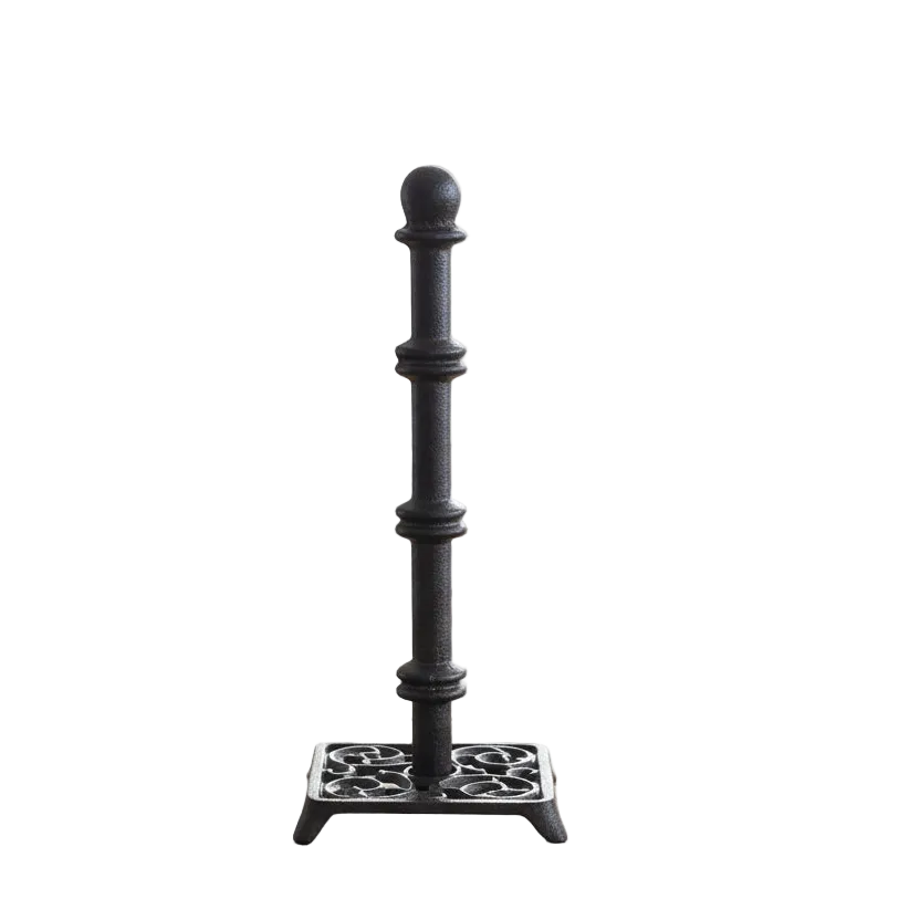 Add functional elegance to your bathroom or kitchen with this versatile cast iron tissue holder. This sturdy metal roll stand features a unique seat-type design that holds paper towels, napkins, toilet rolls, and oil-absorbing paper with style and stability.