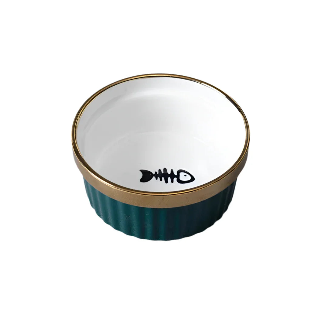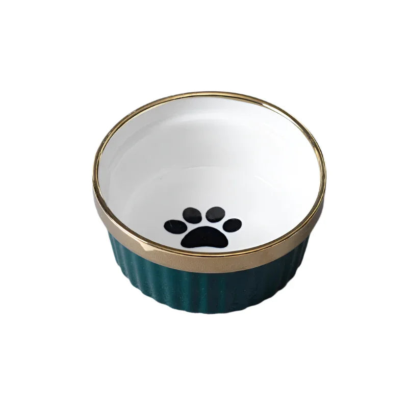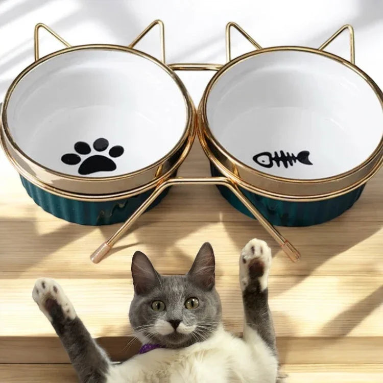 Pamper your feline friend with our elegant Cat Bowl with Stand Gold Green White! This set of double bowls is designed to elevate mealtime and prevent neck strain. The sleek metal stand and stylish ceramic bowls bring a touch of style to any home.