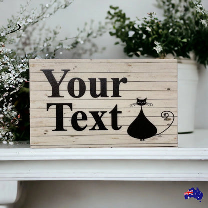Personalise your space with our one-of-a-kind Cat Kitten Kitty Custom Sign. Transform the walls, fence, door, garden or a shelf of your home into a personalized work of art with our unique and charming Cat Kitten Kitty Custom Sign! Embrace your love for felines and showcase your individuality with this custom sign that will captivate and delight anyone who enters your space. Spice up your décor and add a touch of whimsy with this personalised sign unlike any other!