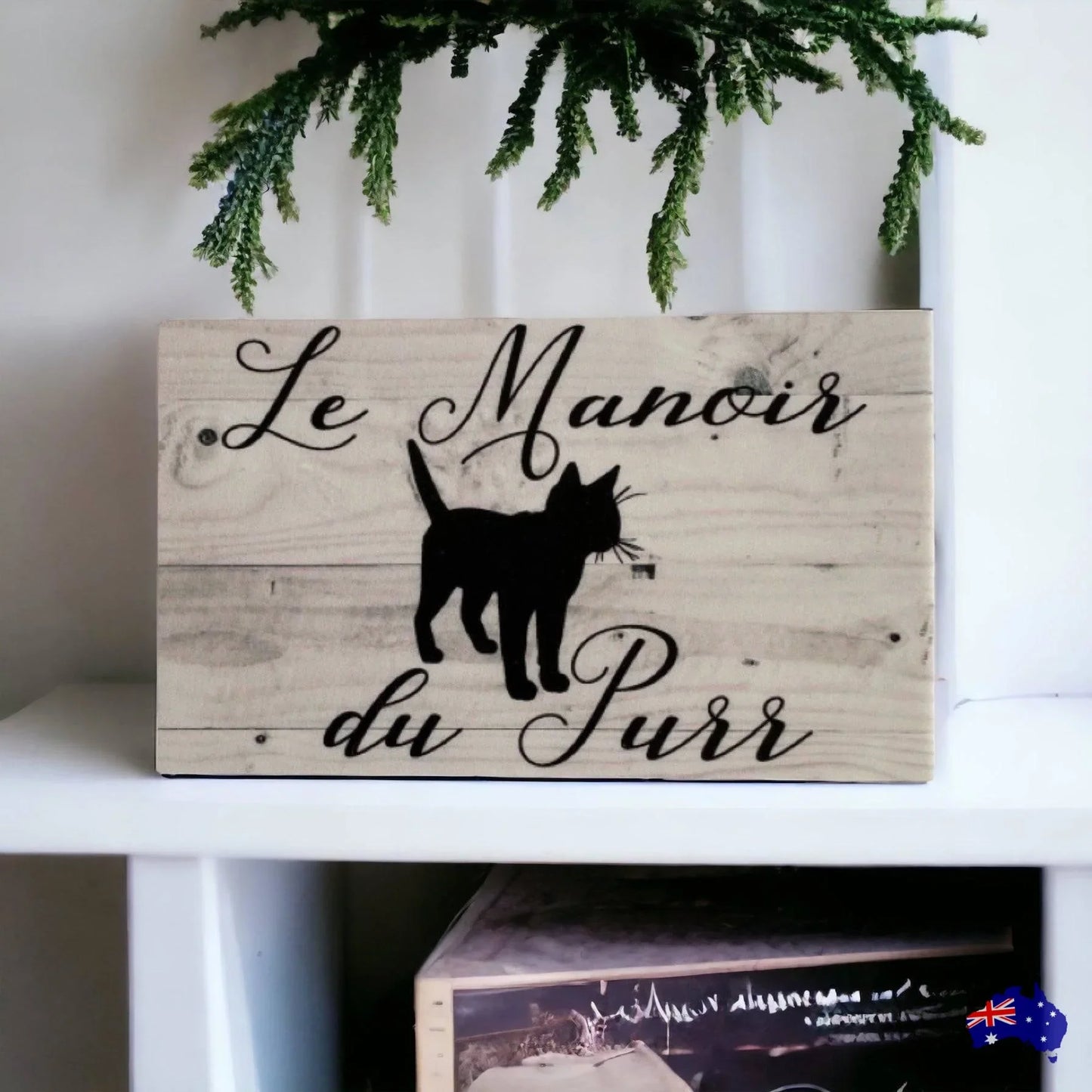 Unleash your love for cats with the Cat Le Manoir Du Purr French Sign! This exquisite sign, featuring the words "The Purr Manor" in French, will add a touch of French elegance and feline charm to any room.