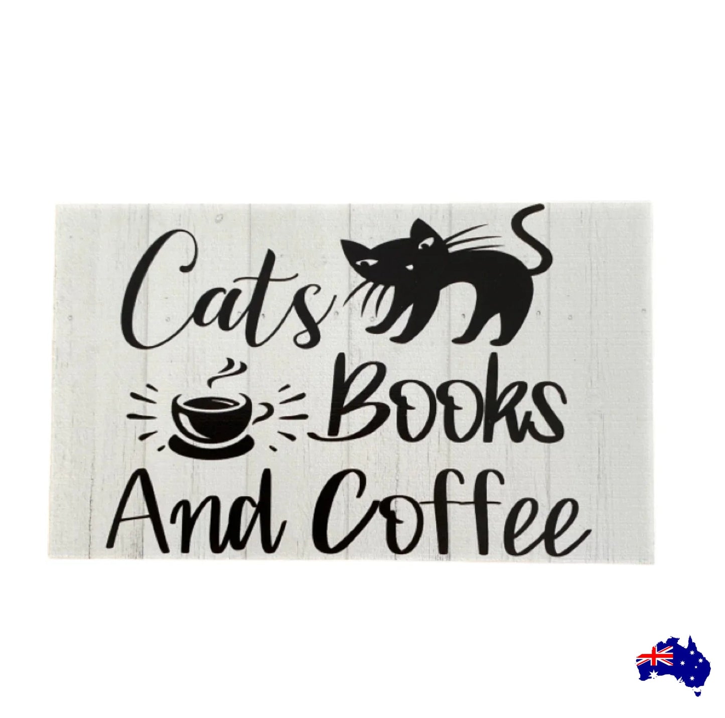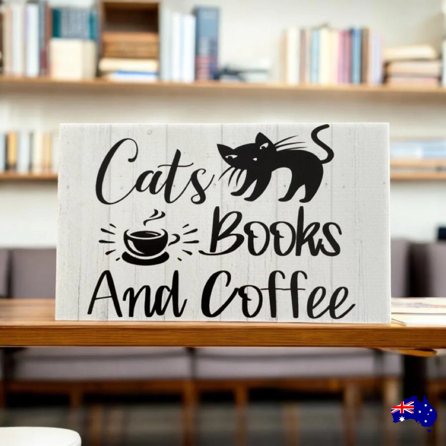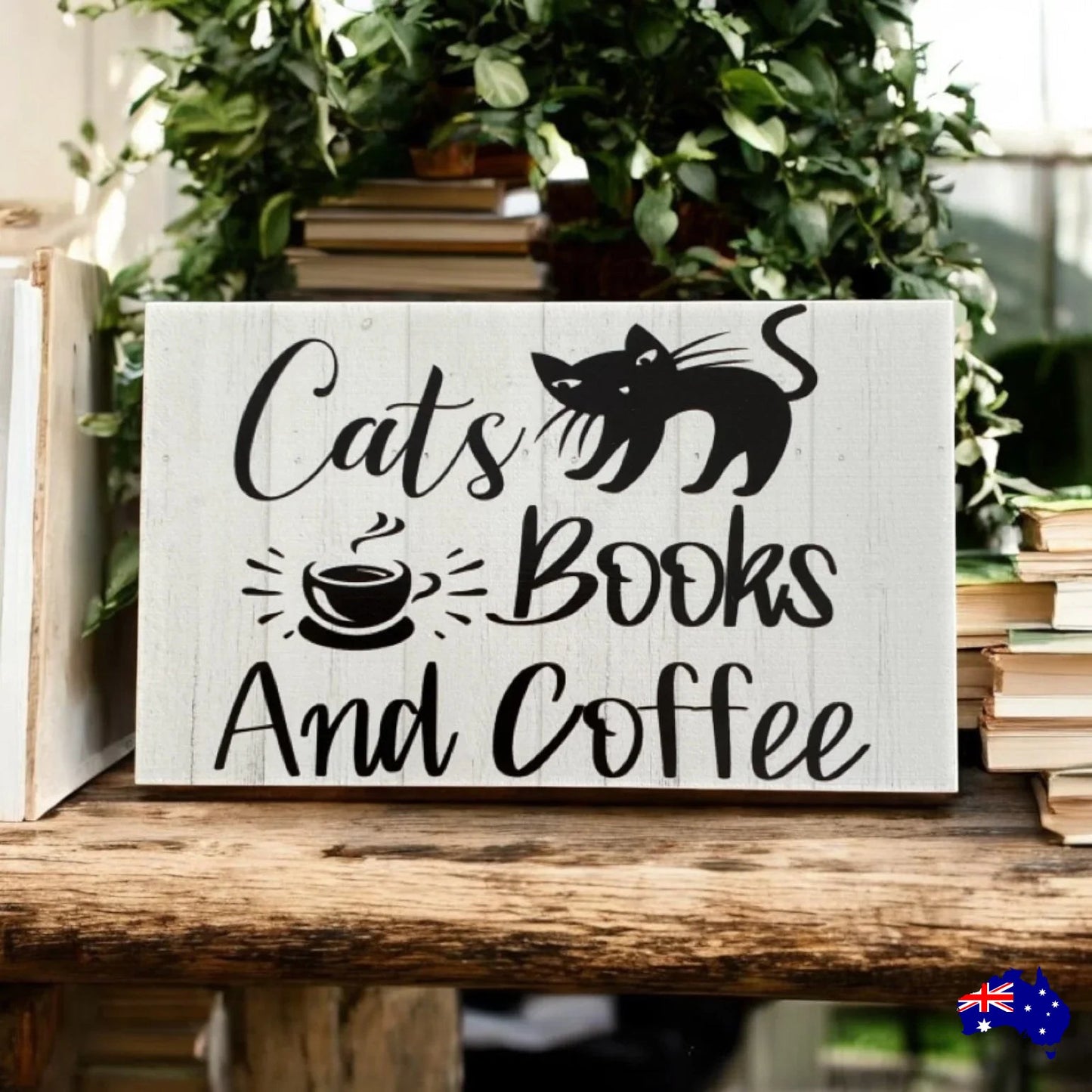 Transform your space into a cozy and charming retreat with this Cats Books and Coffee Sign. Perfect for cat lovers, book enthusiasts, and coffee aficionados alike, this sign adds a touch of personality and warmth to any room. Display it in your kitchen, living room, or home office to bring a smile to your face and inspire a cozy and creative atmosphere. Made to display indoors or out in the garden, this sign will be a beloved staple in your home for years to come. Order now and add a little feline flair to your decor!