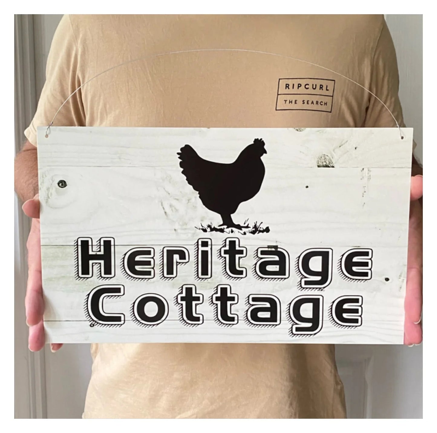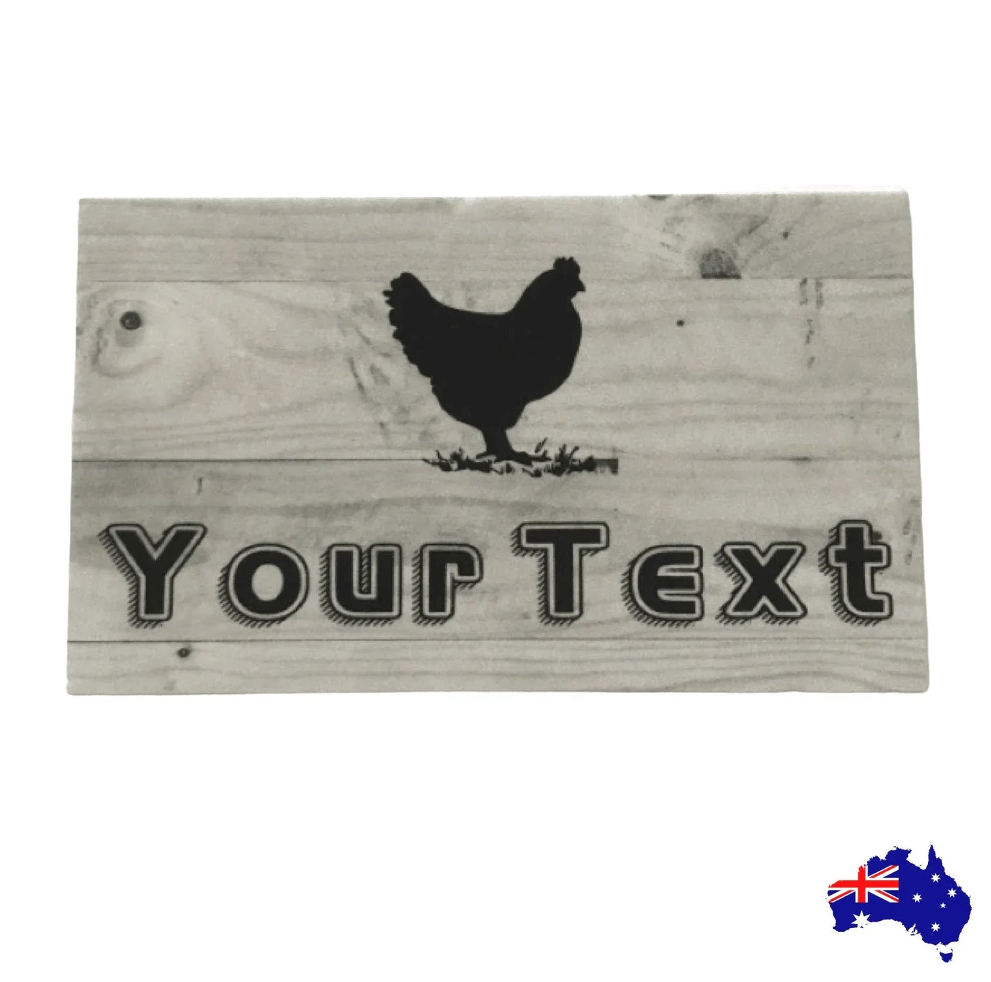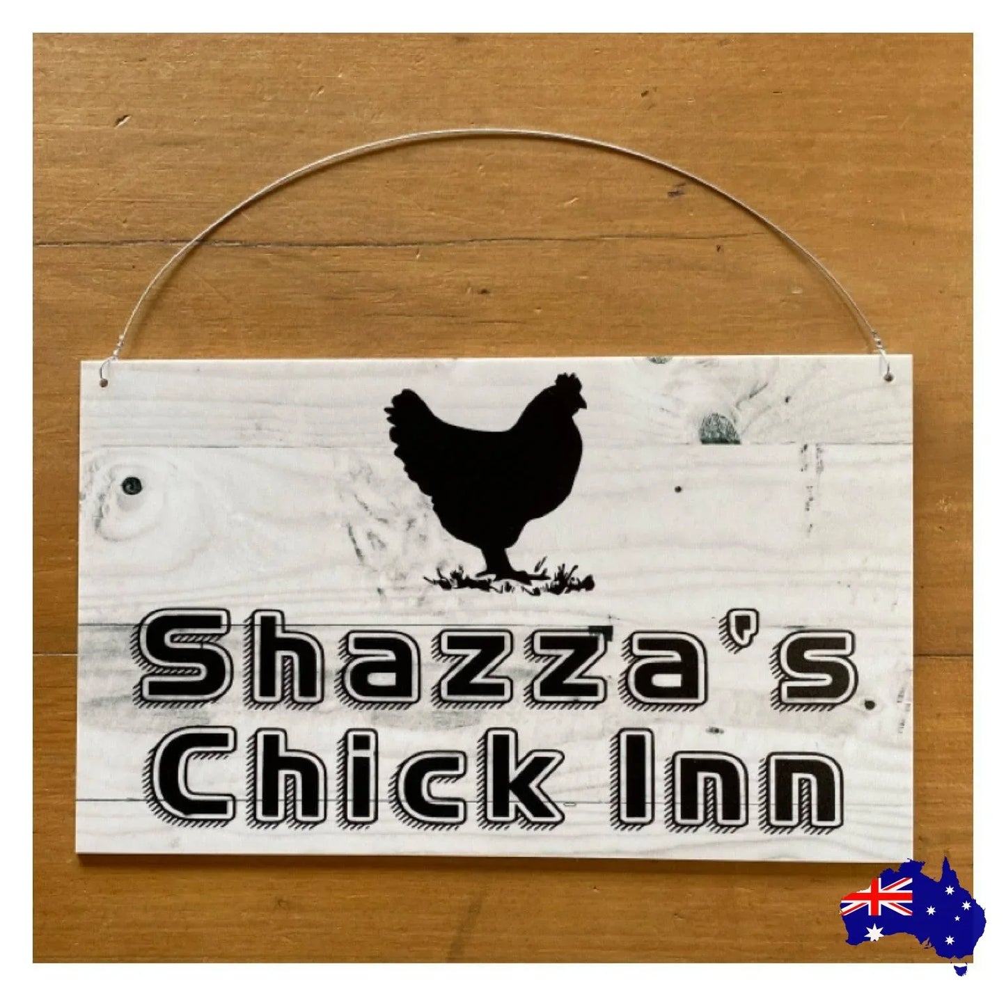 Transform your space with a personalized touch by incorporating our Chicken Hen Custom Personalised French Sign. Modify the wording of this sign to infuse a distinctive flair into your chicken coop, Chick Inn, display your Chicken Names, garden signage, or add to you kitchen, bathroom or home decor.