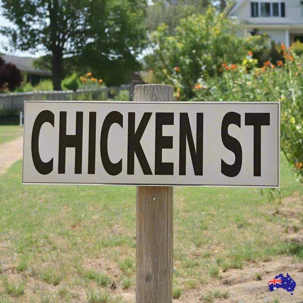 Transform your backyard into a charming farm with the Chicken Street Coop Farm Sign. Imagine the satisfying feeling of seeing your feathered friends roam freely and happily in their cozy coop. What better way to enhance your outdoor living space and bring a touch of country life into your home? This sign is the perfect finishing touch for any chicken lover's paradise.