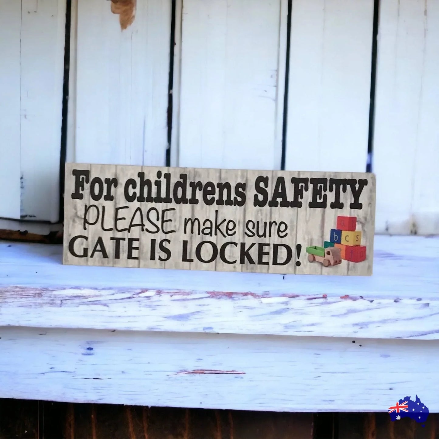 Ensure your kids stay secure and safeguarded with our Children Safety Gate Sign, crafted and created in Australia. This handy sign reminds visitors to keep the gate locked, making it a perfect accessory for both indoors and outdoors!