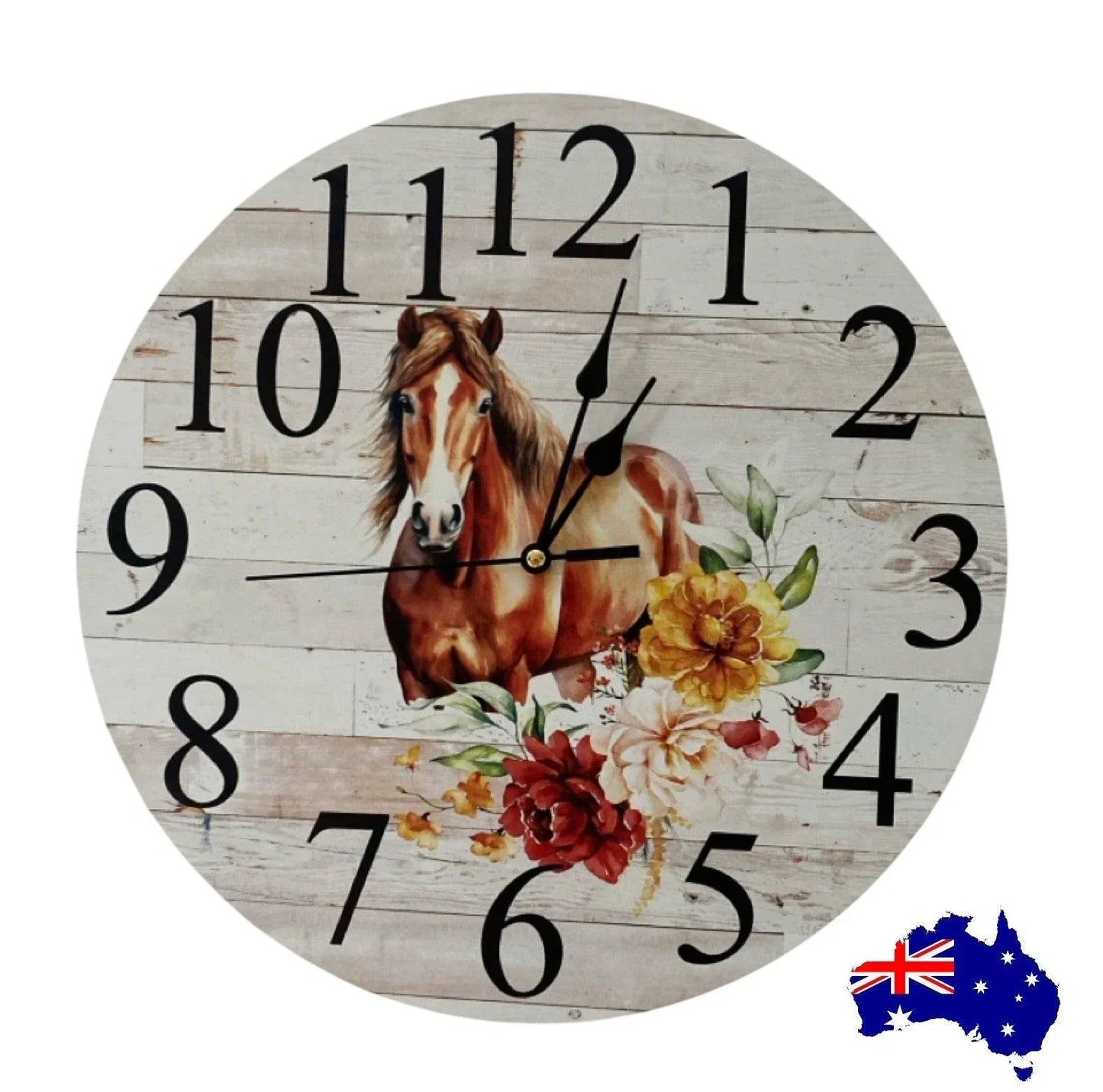 Clock Wall Barb Horse Floral 30cm or 60cm Aussie Made