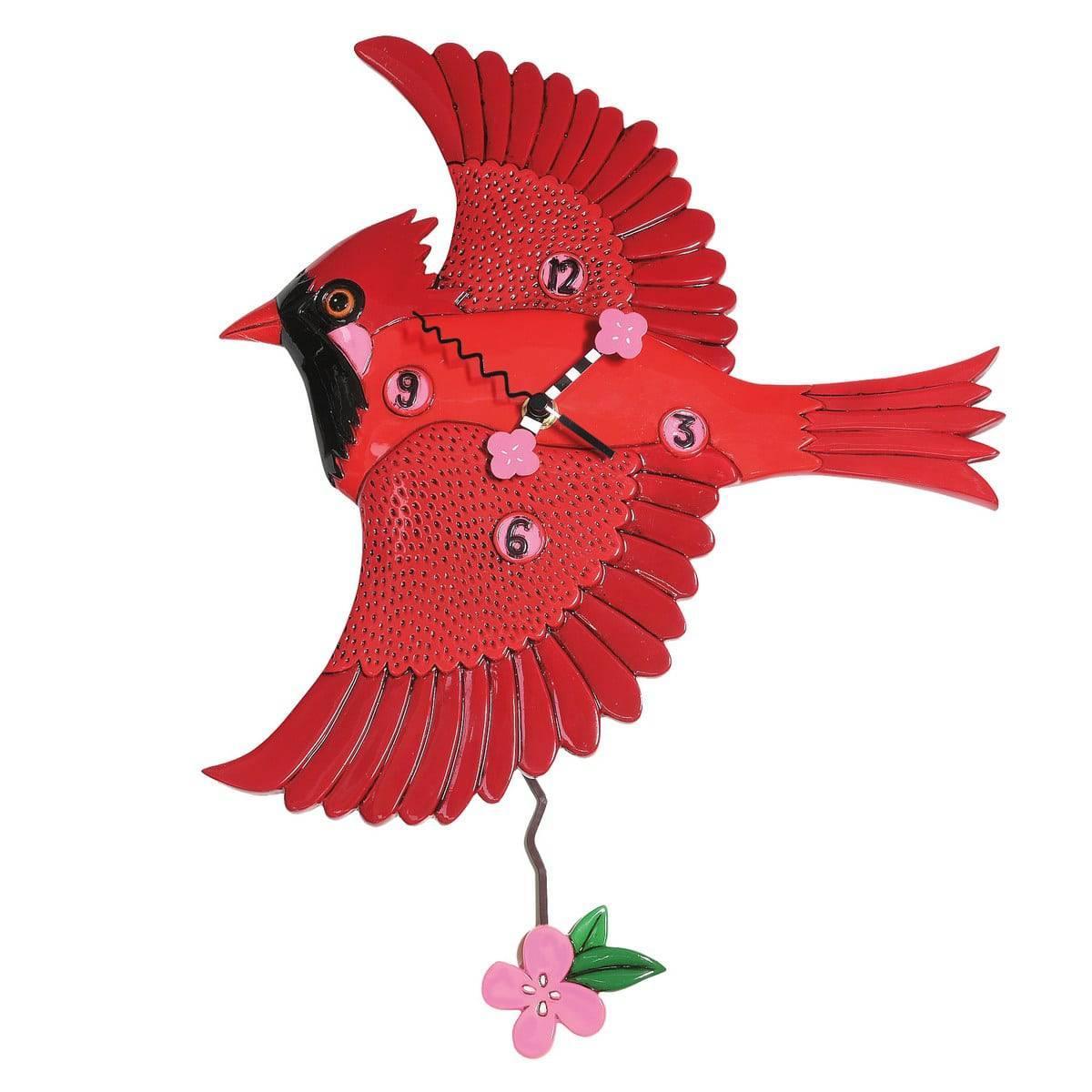 Clock Wall Bird Cardinal Red Funky Allen Designs Pendulum