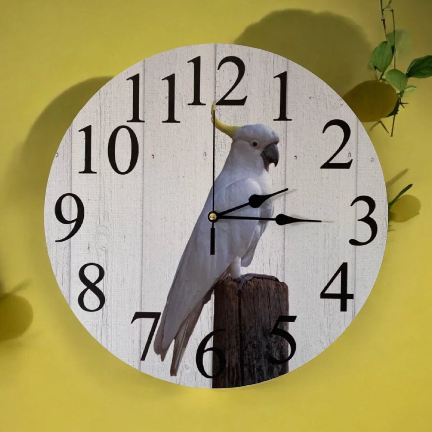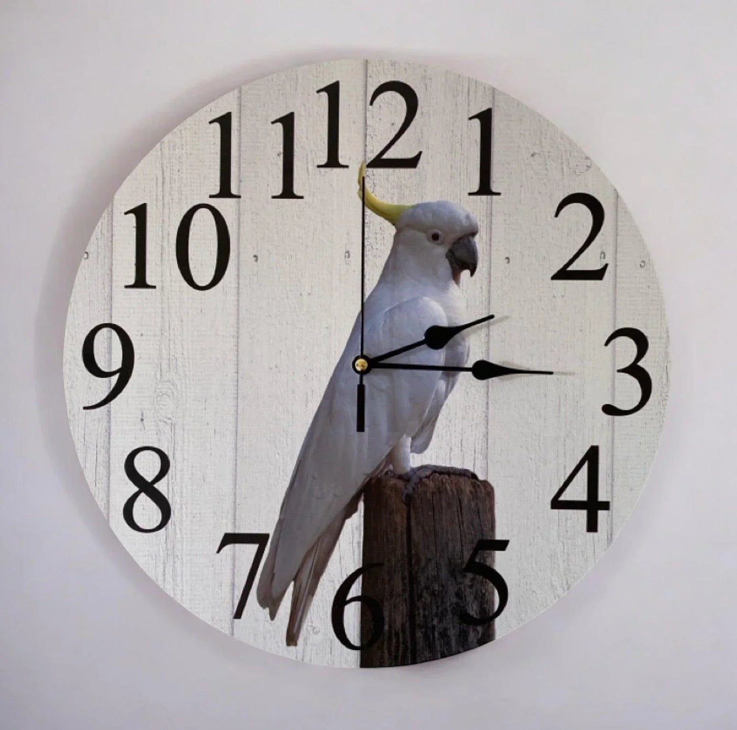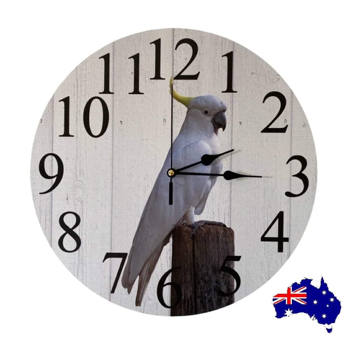 Clock Wall Bird Cockatoo 30cm 60cm Aussie Made