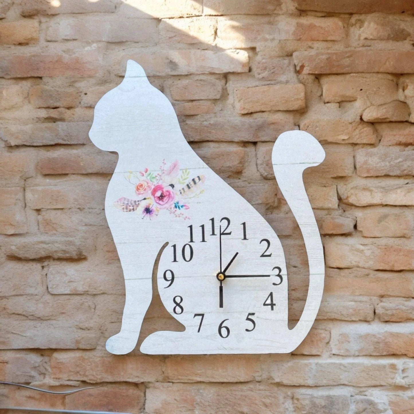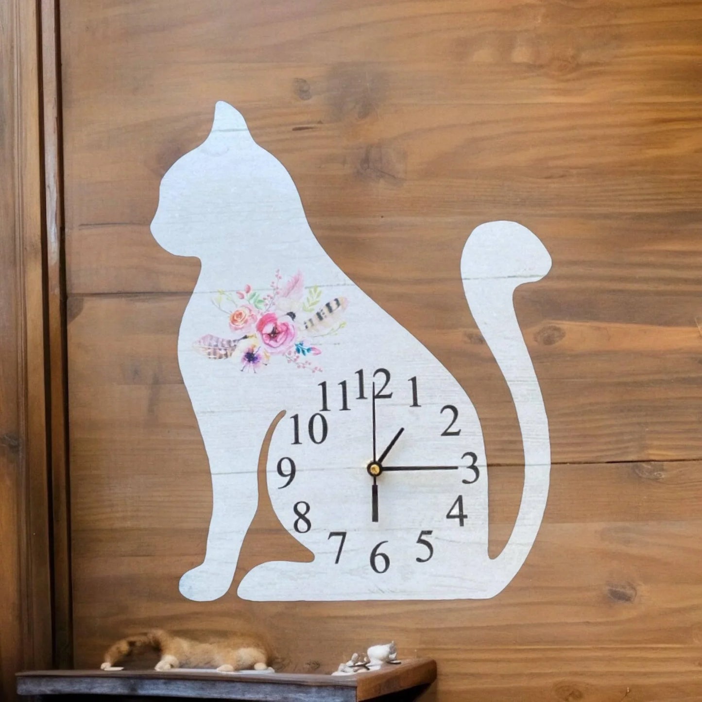 Clock Wall Cat Kitty Floral Feather Aussie Made
