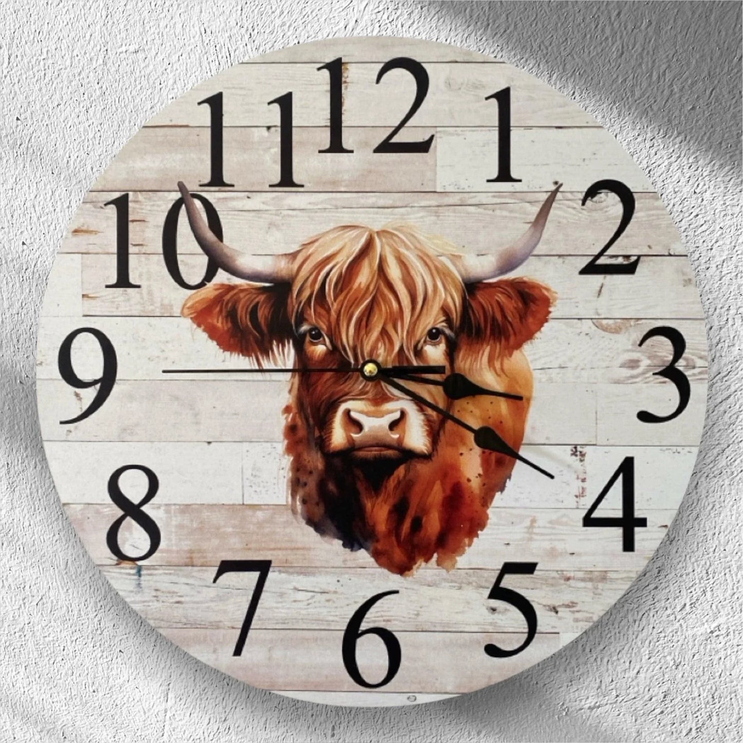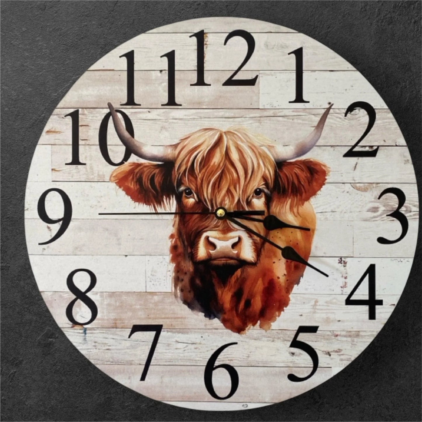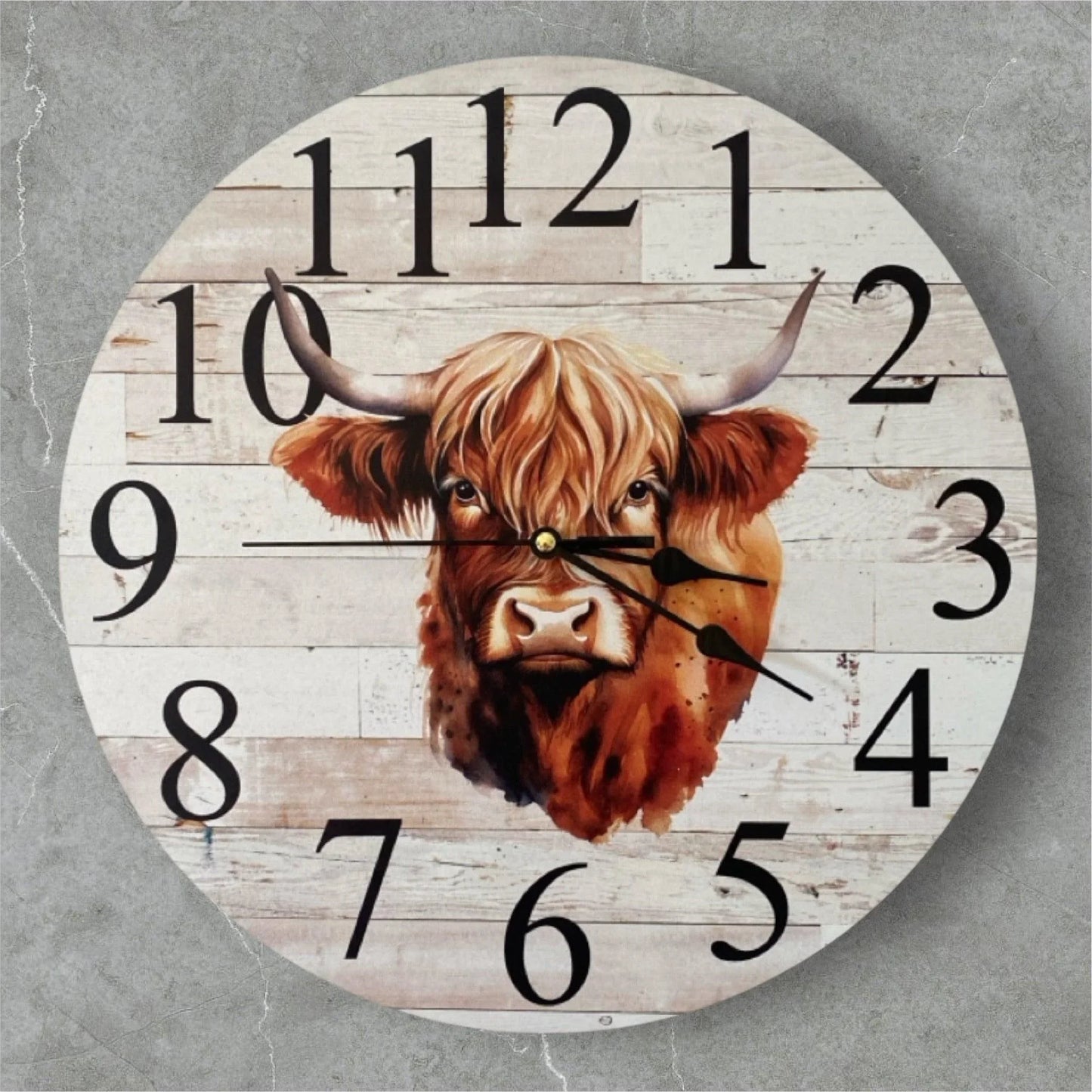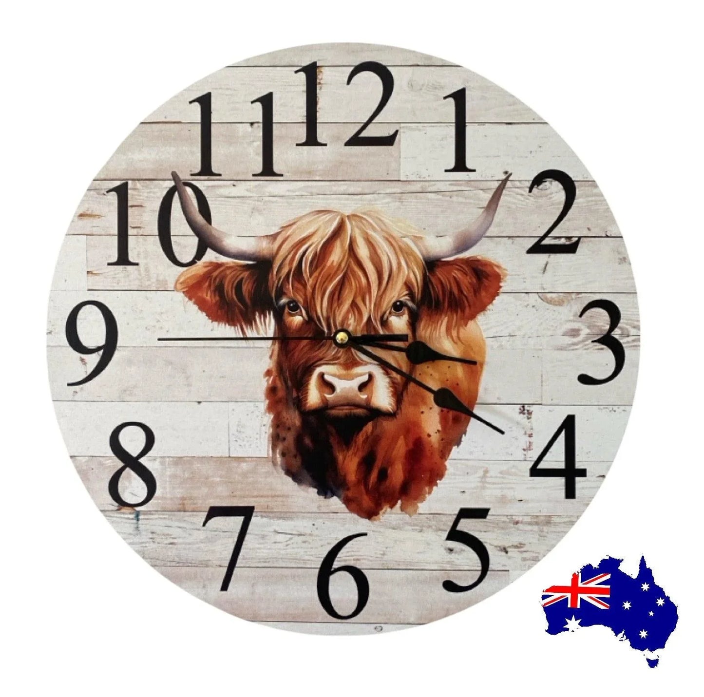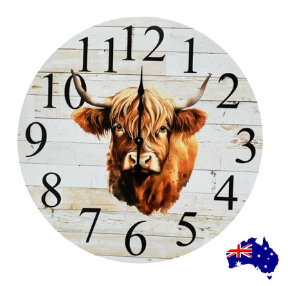 Clock Wall Cow Highland 30cm or 60cm Aussie Made