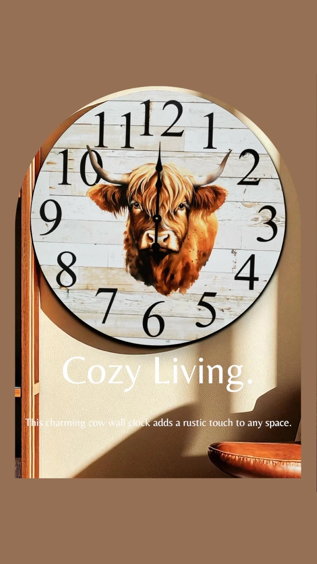 This stunning rustic style timber look clock with a adorable highland Cow is handcrafted and uniquely designed by a passionate Husband and Wife duo in Australia so your supporting an Aussie Family!! With free delivery available across Australia, this Wall Clock is a must-have for any home or business, adding the perfect touch to your decor. Made from MDF wood, quality quartz clock mechanism which uses x 1 AA Battery (No Battery Included)