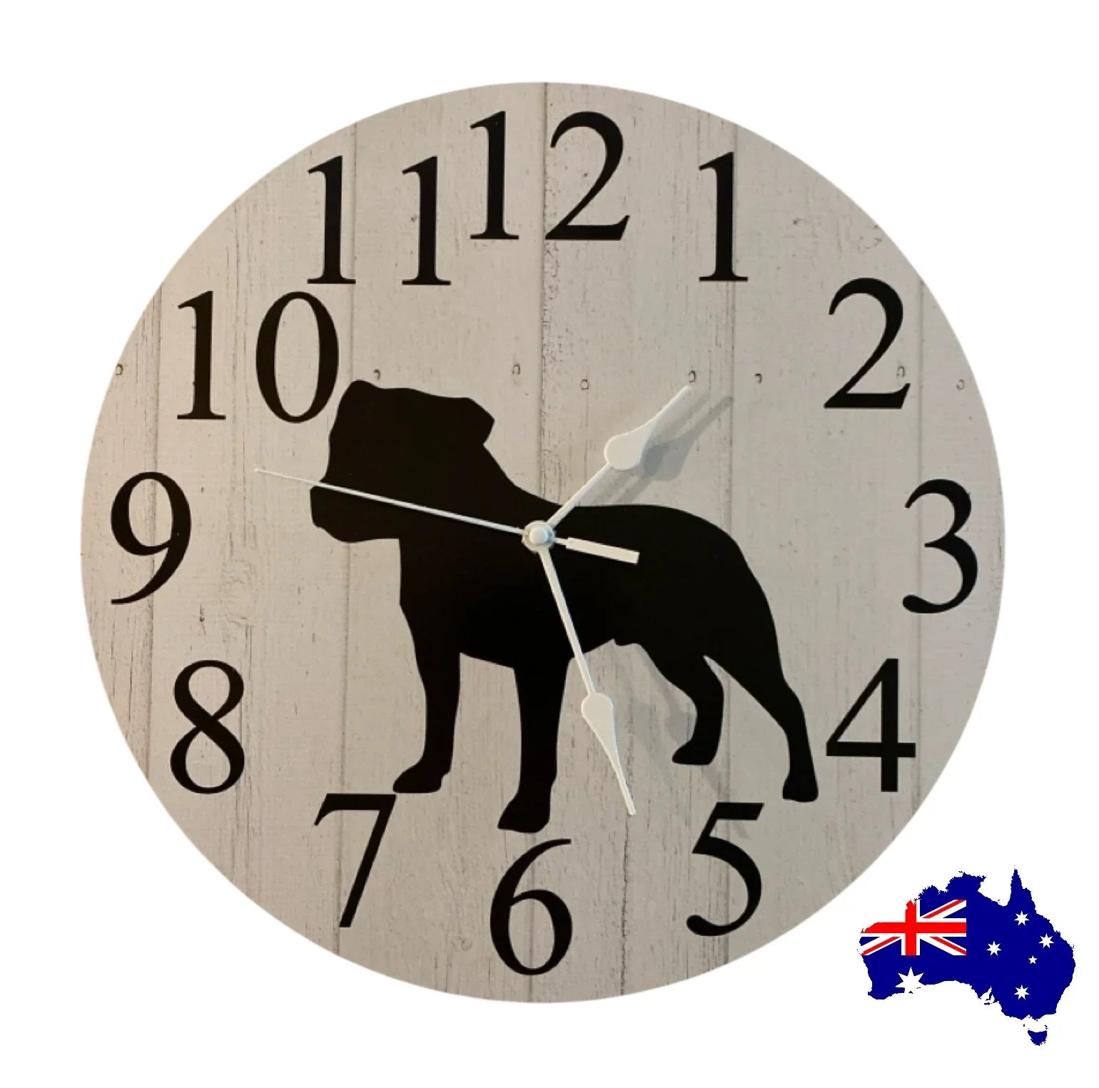 Clock Wall Dog Staffy Staffordshire Bull Terrier 30cm 60cm Aussie Made