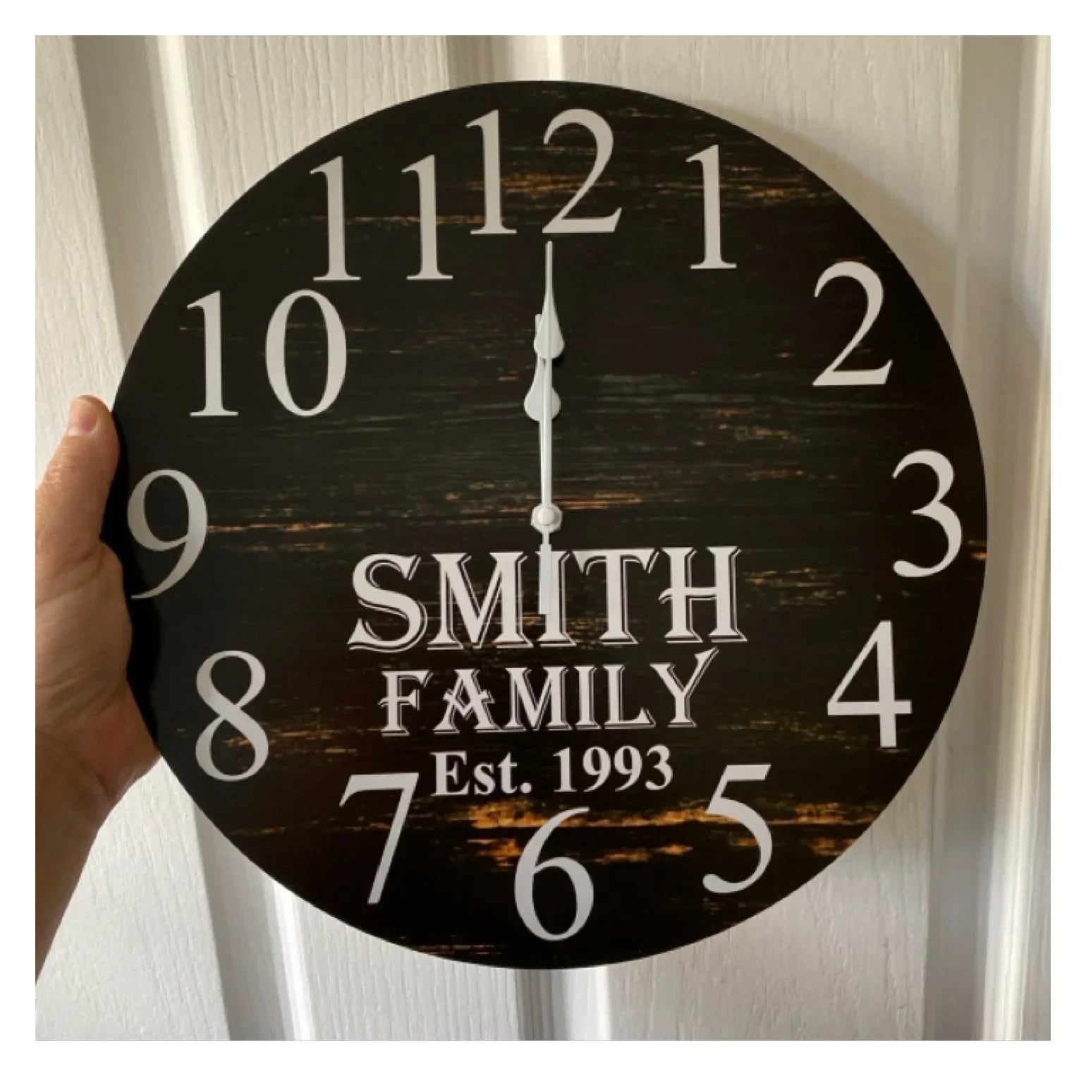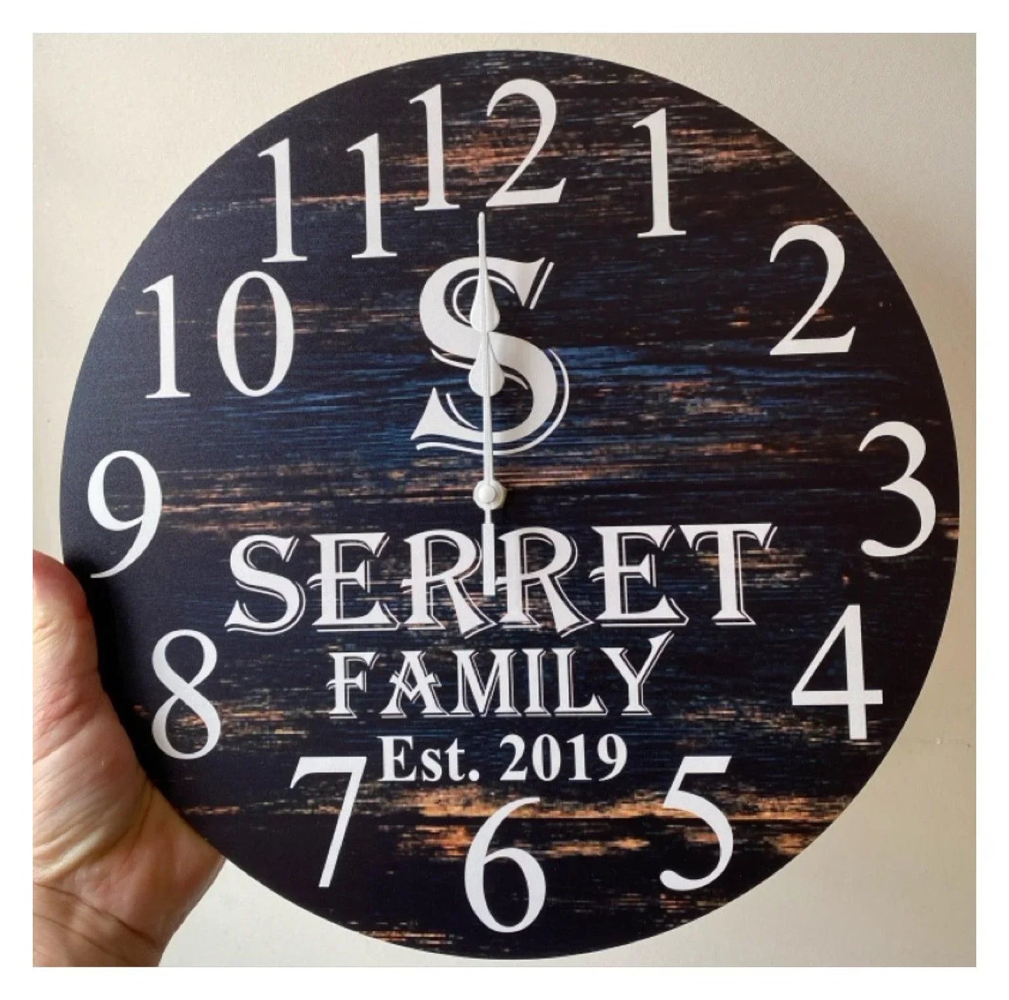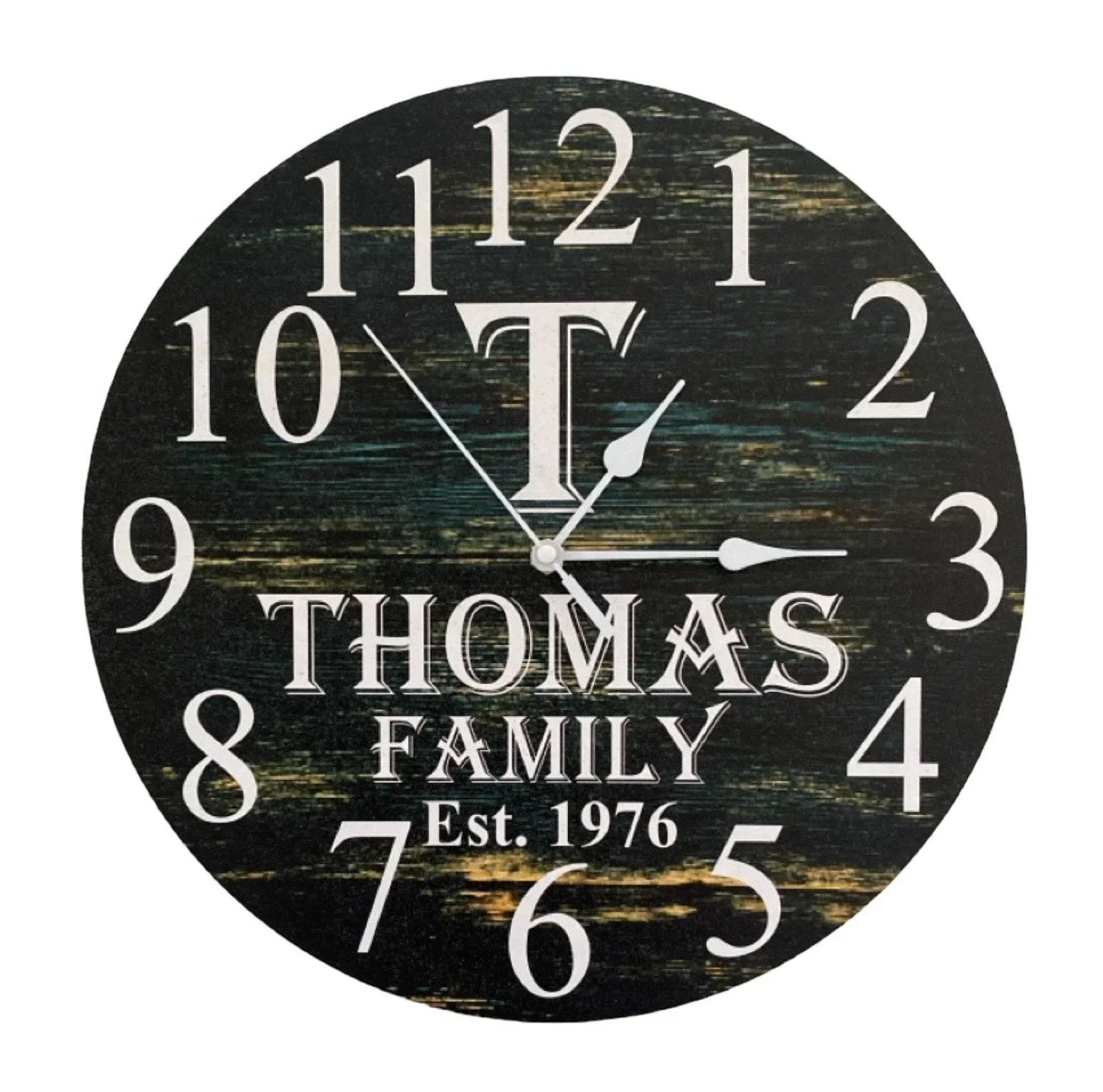 Unleash your creativity with endless possibilities for your family surname and Est. Date personalised clock! Keep in mind too much text looks crowded so please keep your custom text to a minimum.