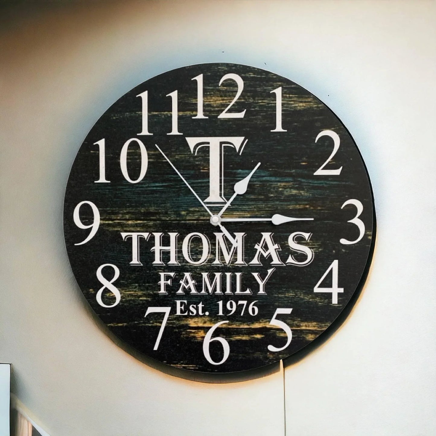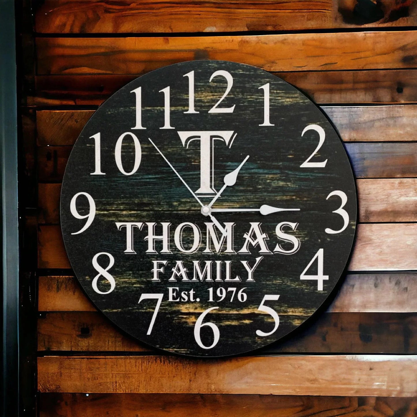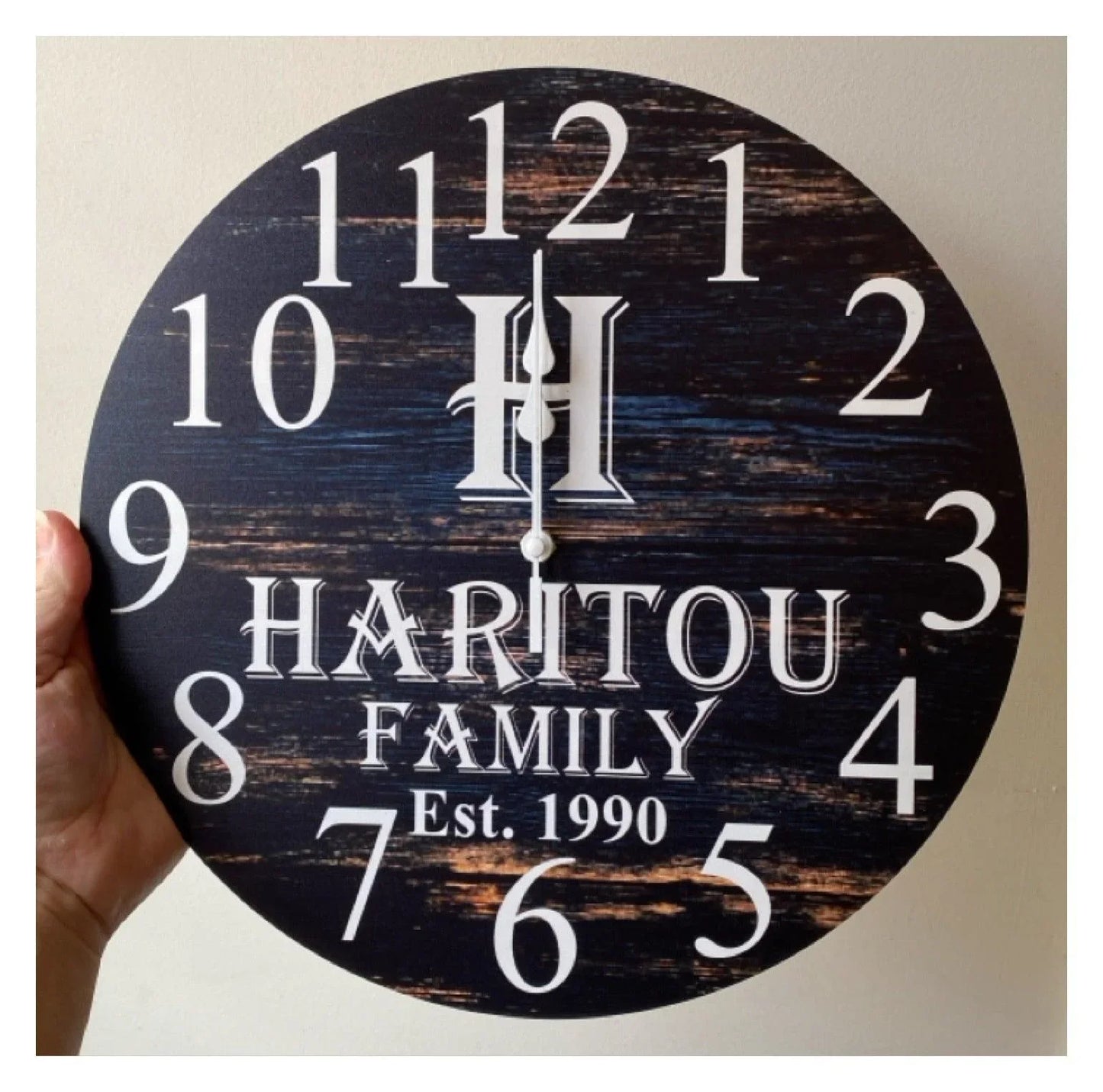 Unleash your creativity with endless possibilities for your family surname and Est. Date personalised clock! Keep in mind too much text looks crowded so please keep your custom text to a minimum.