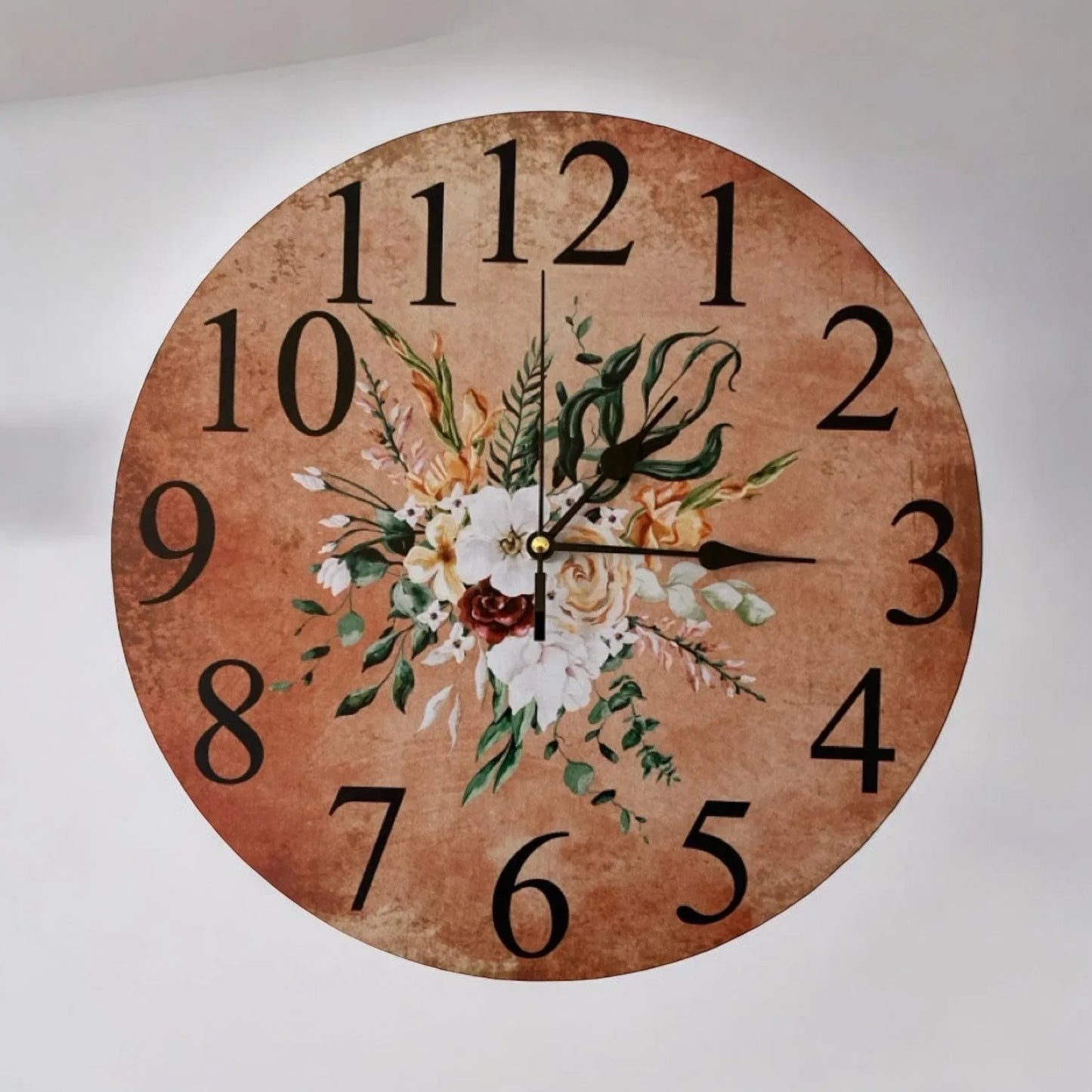 This stunning Floral Warm Flowers Country Cottage Clock is handcrafted and uniquely designed by a passionate Husband and Wife duo in Australia so your supporting an Aussie Family!! With free delivery available across Australia, this Wall Clock is a must-have for any home or business, adding the perfect touch to your decor. Made from MDF wood, quality quartz clock mechanism which uses x 1 AA Battery (No Battery Included)