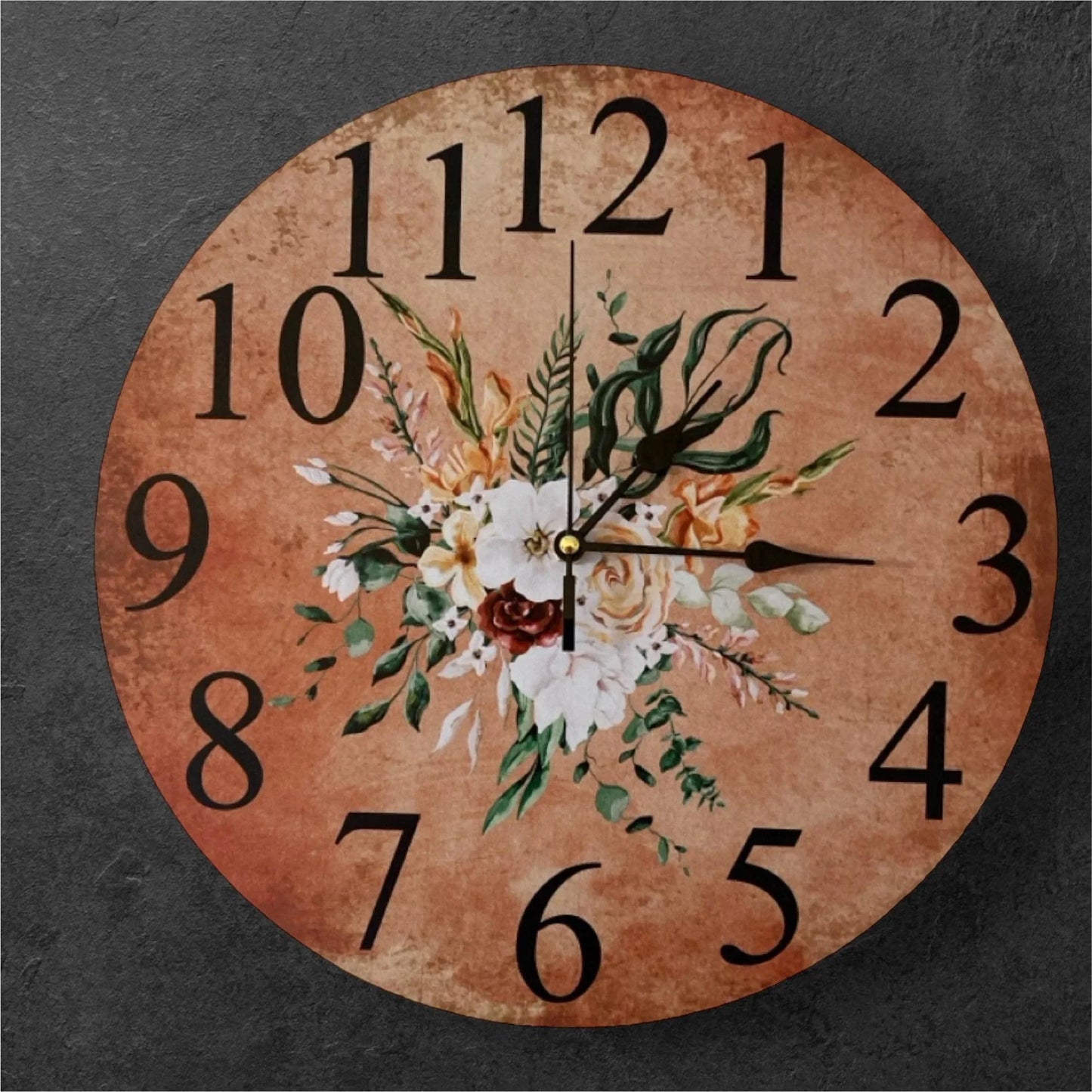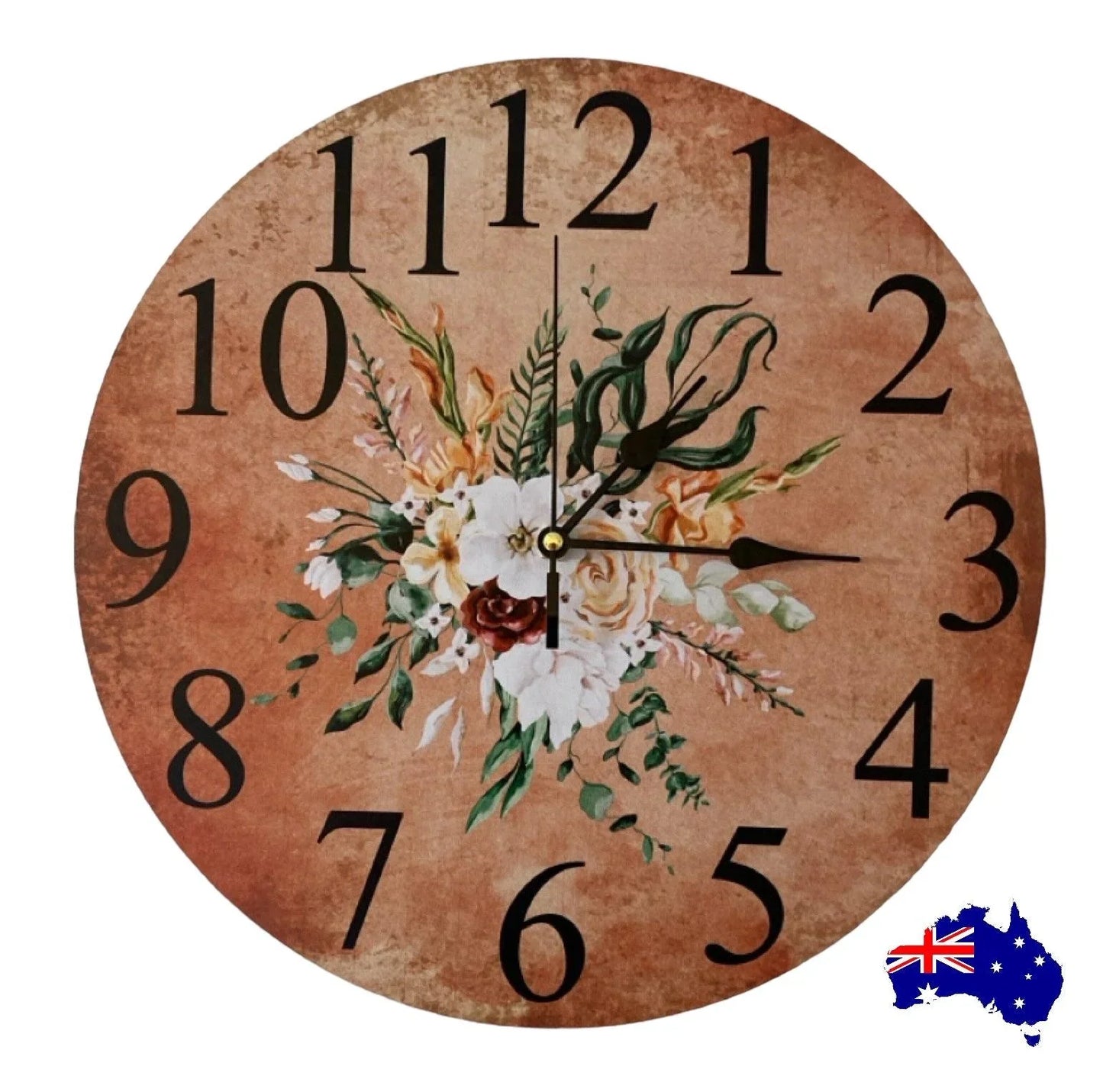 Clock Wall Floral Warm Flowers Country Cottage 30cm 60cm Aussie Made