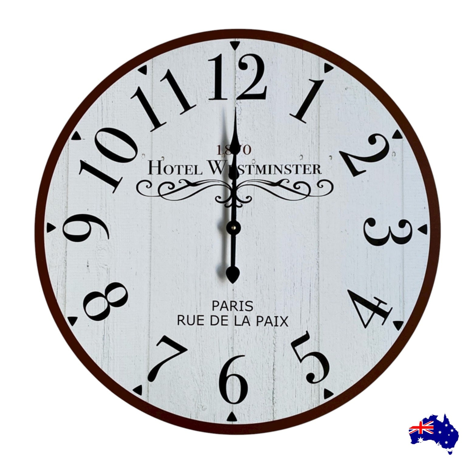 Clock Wall French Hotel Vintage 30cm 60cm Aussie Made