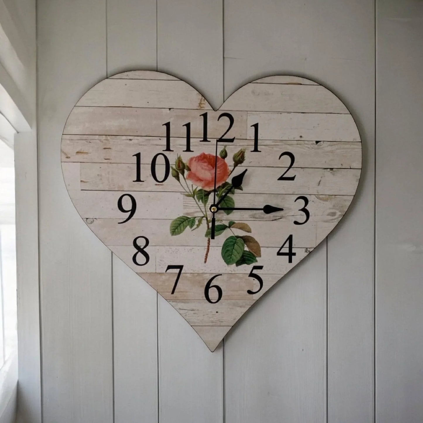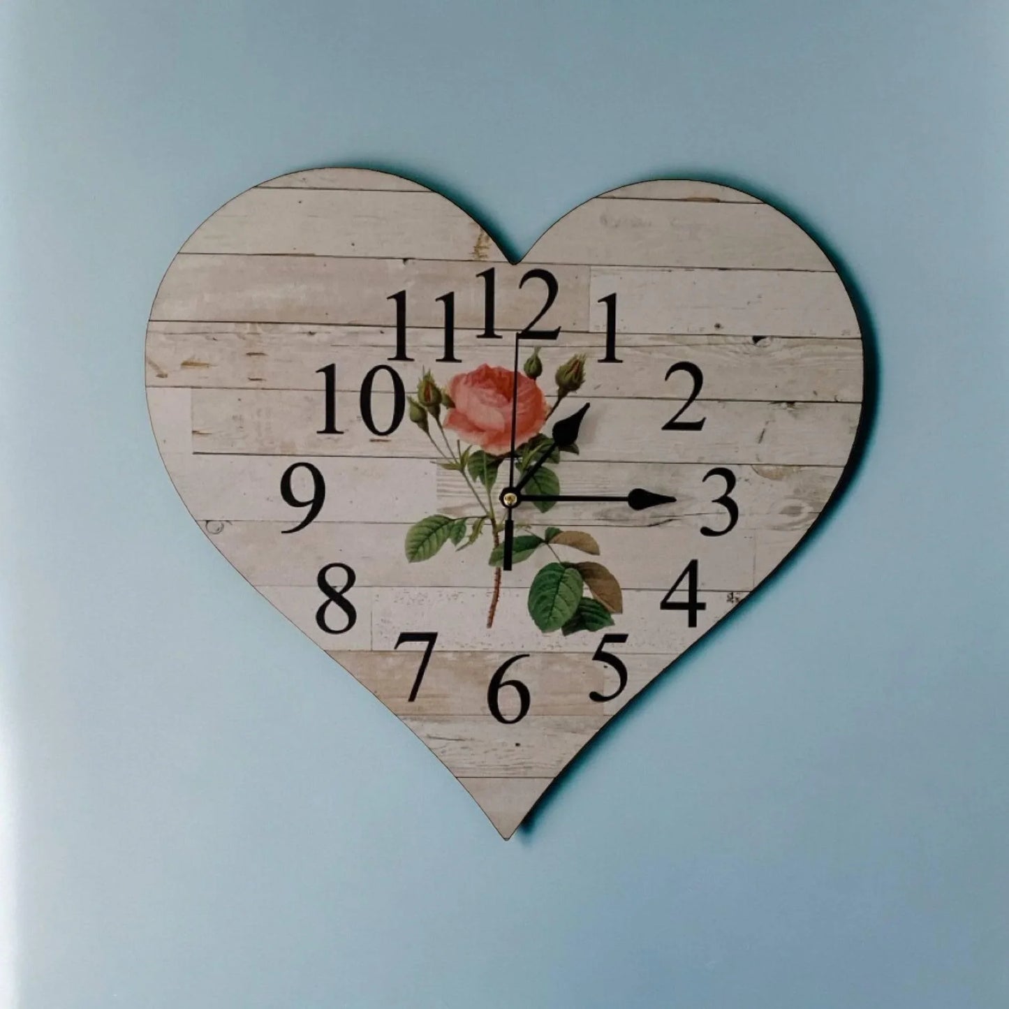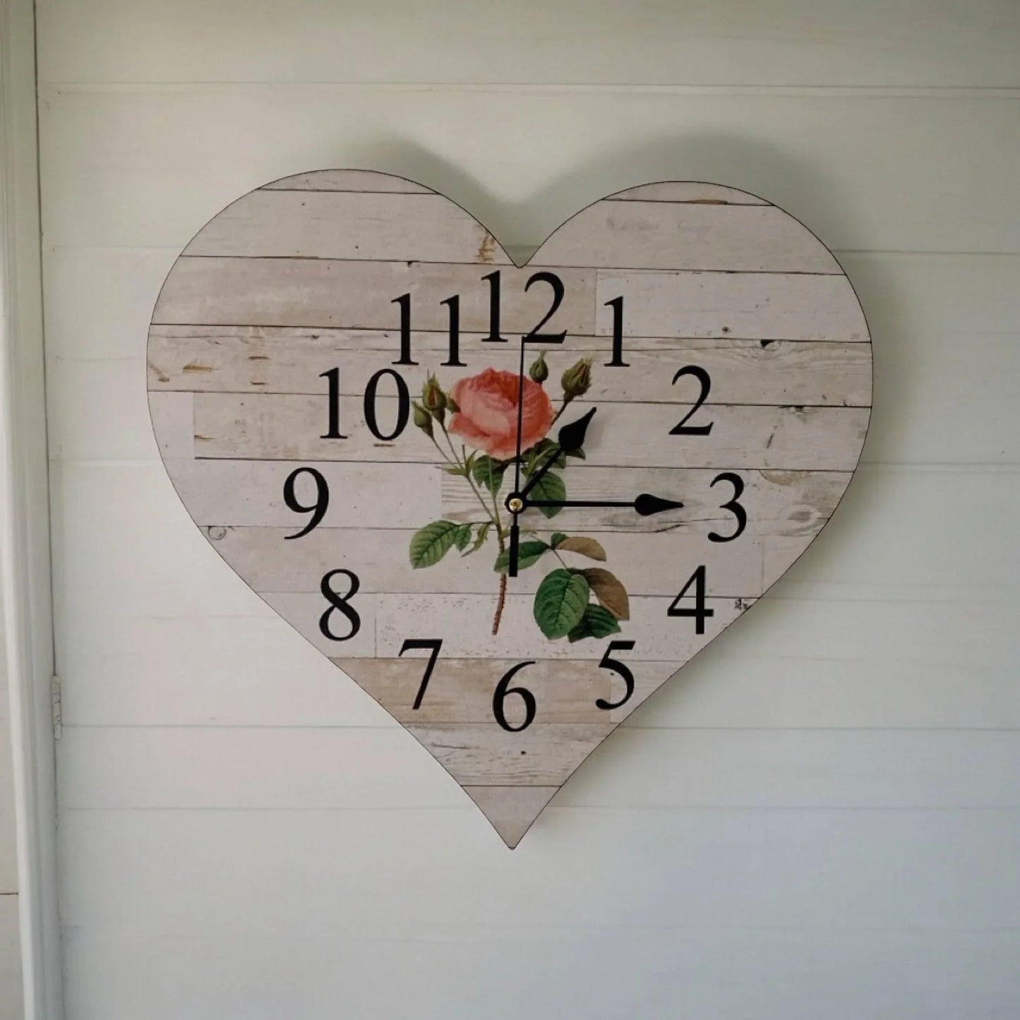 This stunning Heart shaped Boho Country to French Floral Rose clock is handcrafted and uniquely designed by a passionate Husband and Wife duo in Australia so your supporting an Aussie Family!! With free delivery available across Australia, this Wall Clock is a must-have for any home or business, adding the perfect touch to your decor. Made from MDF wood, quality quartz clock mechanism which uses x 1 AA Battery (No Battery Included) this clock boasts an approximate size of 32.5cm wide, .3cm thick, and 30.5cm high.