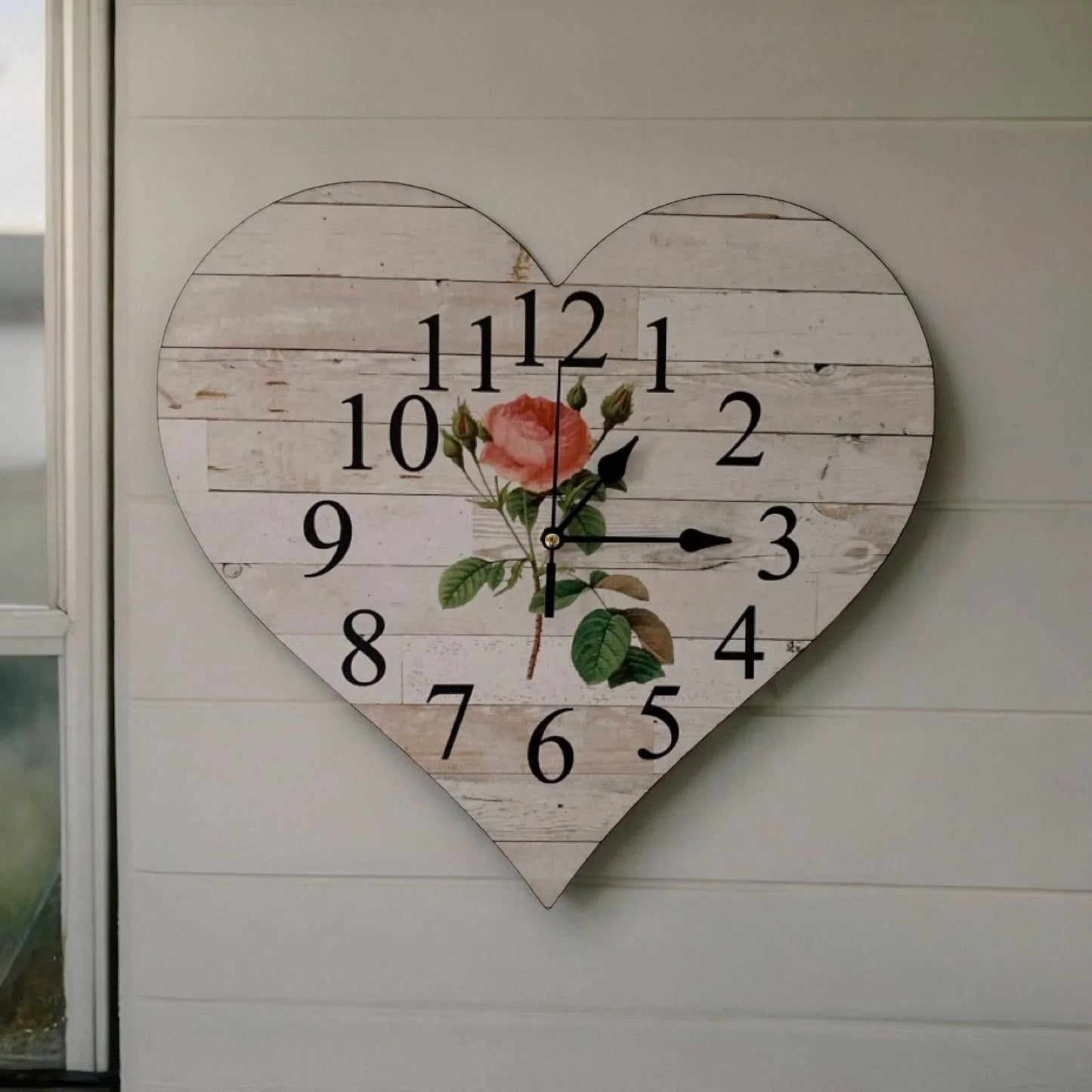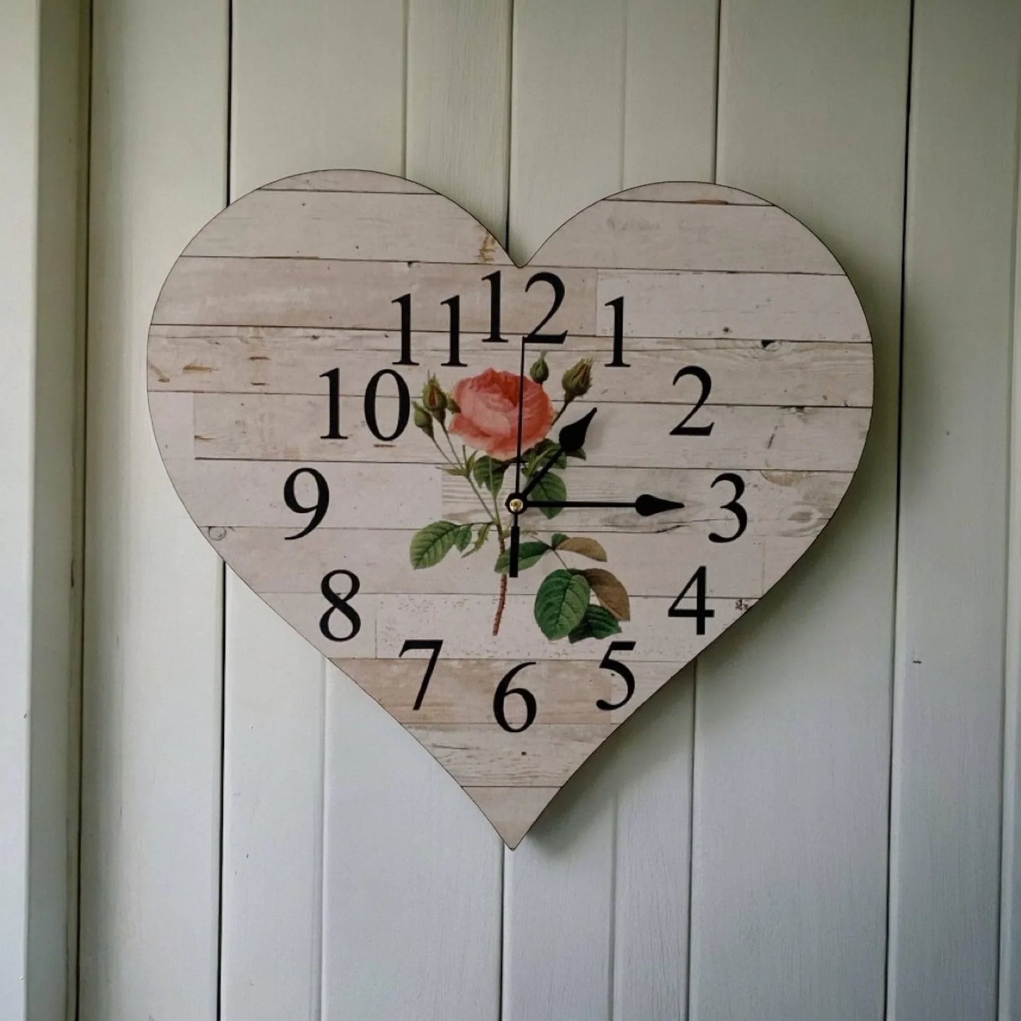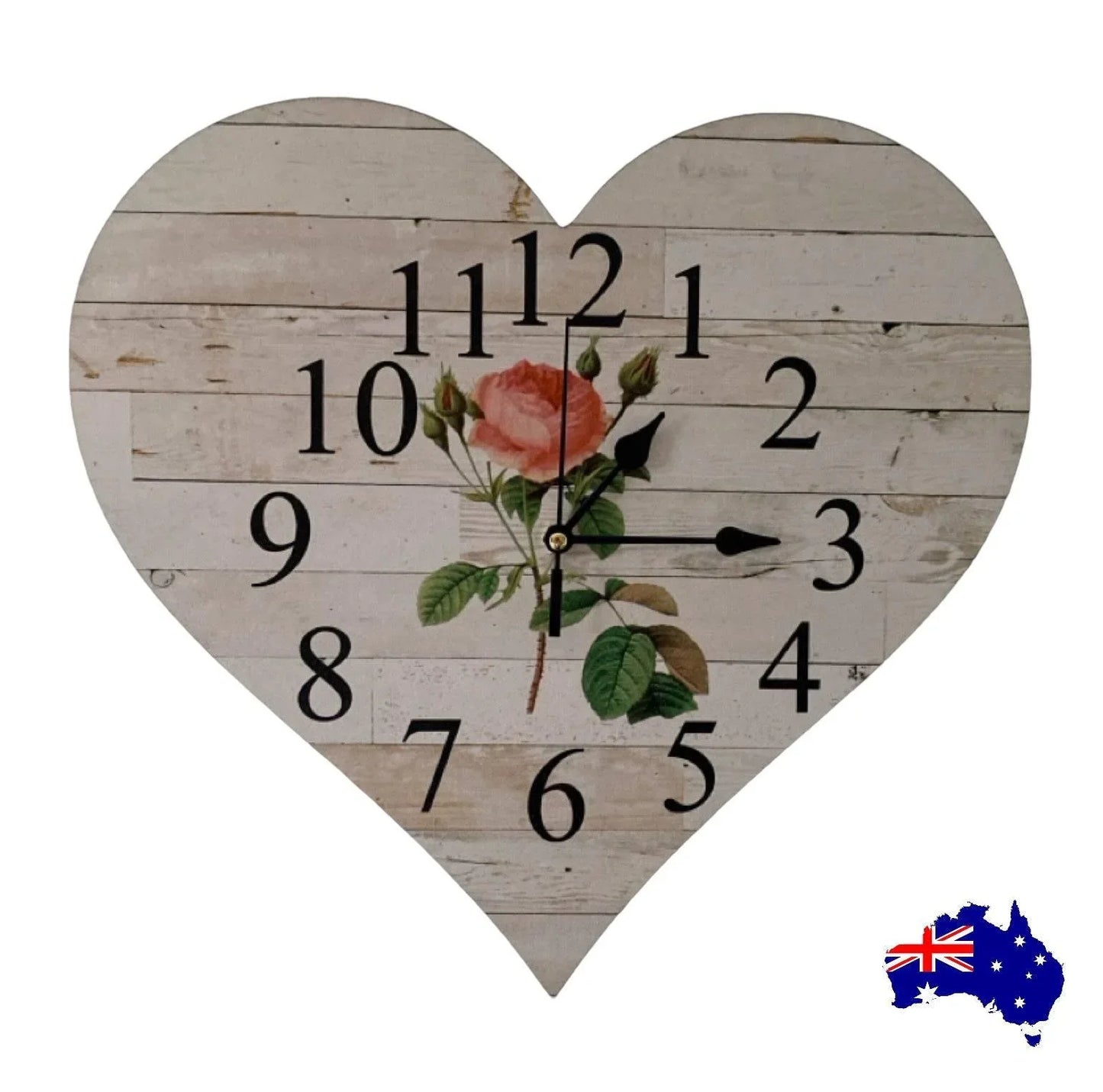 Clock Wall Heart Cottage Rose Aussie Made