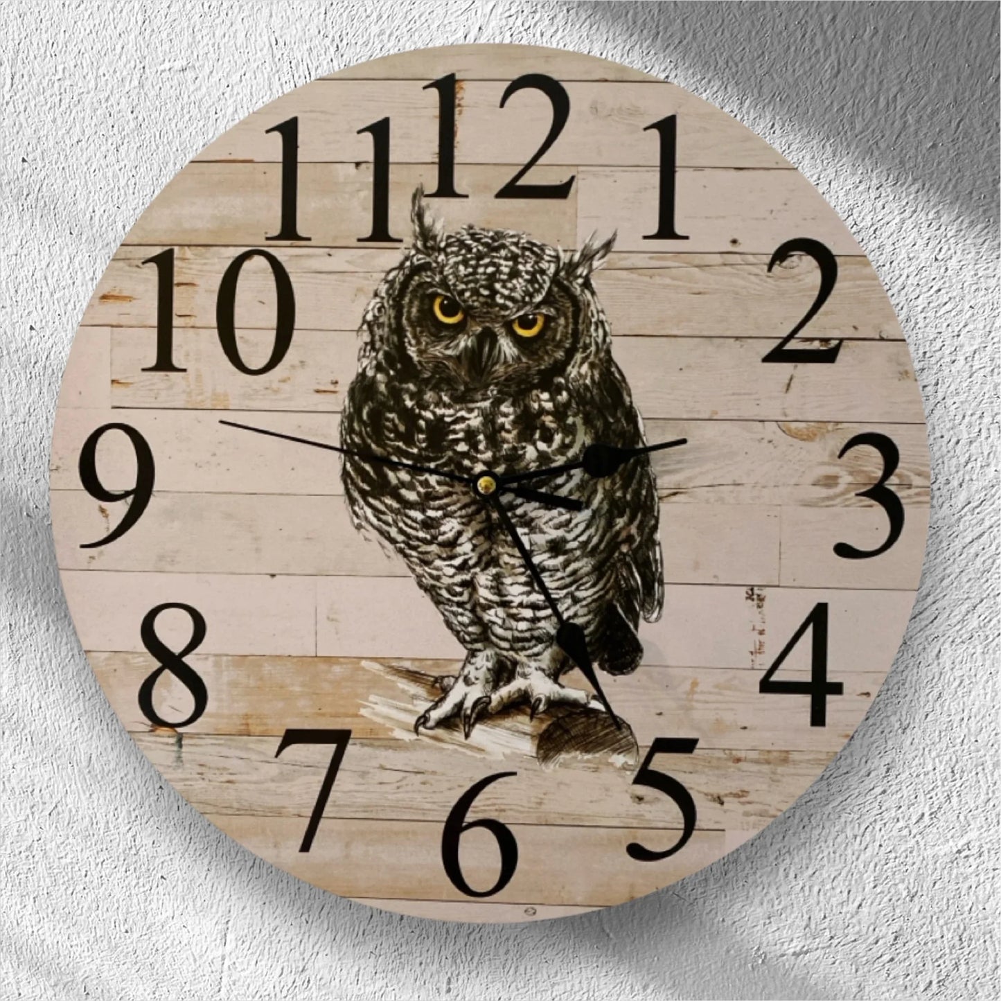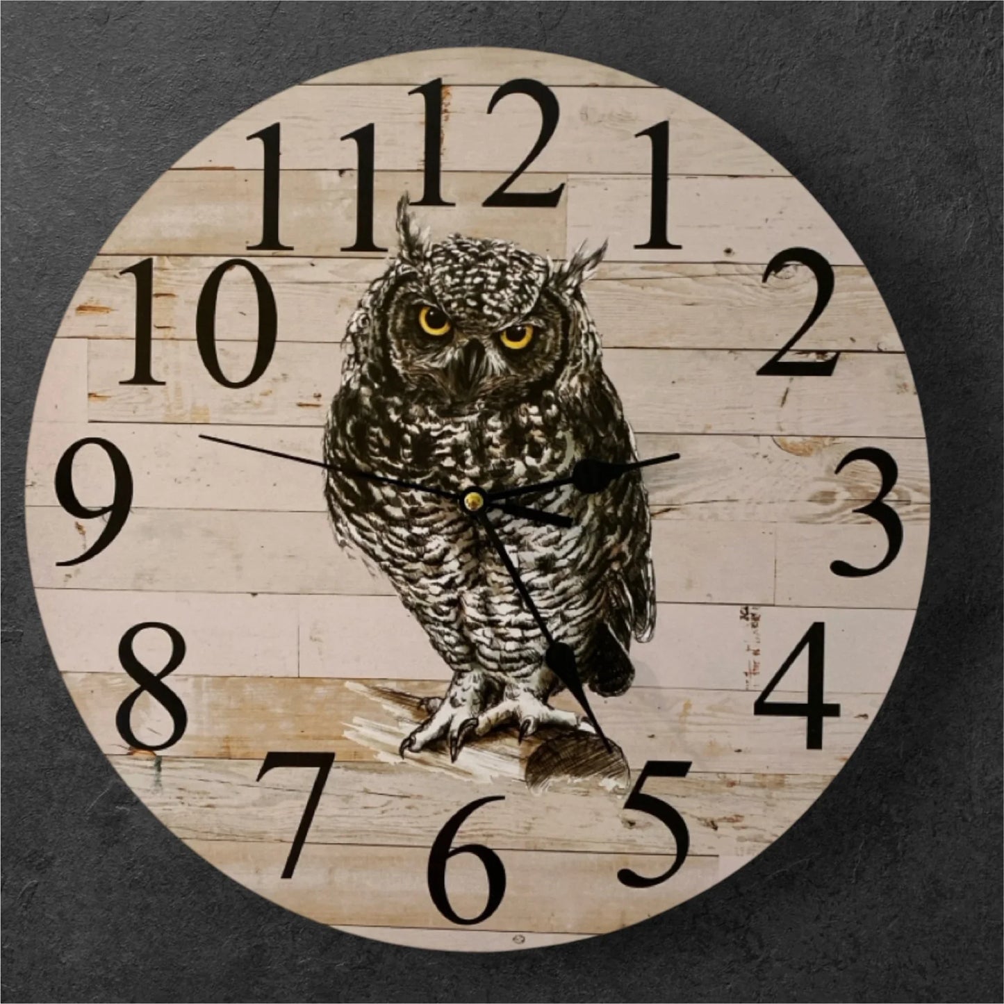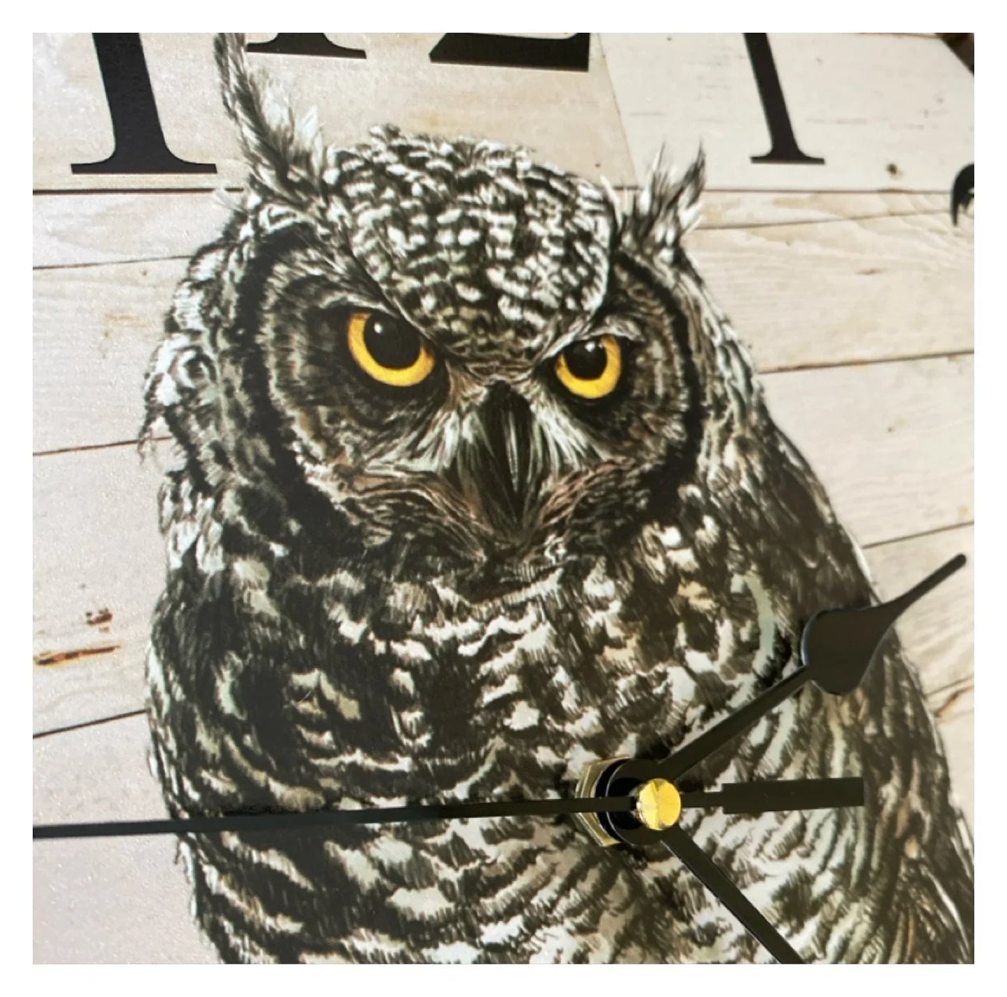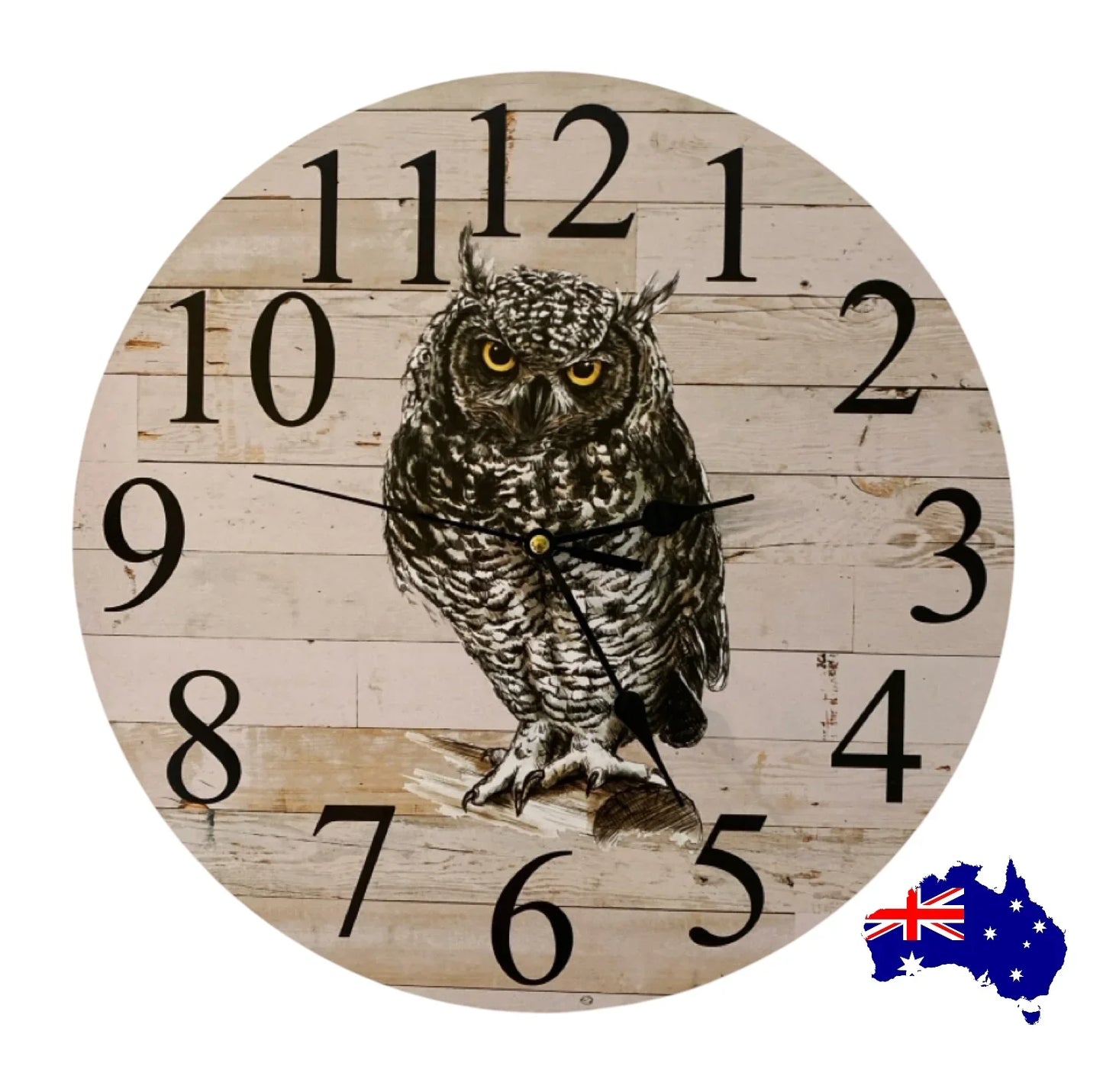 Clock Wall Owl Bird 30cm or 60cm Aussie Made