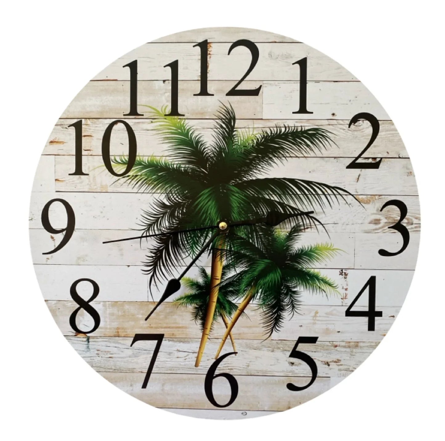 This stunning Clock Wall Palm Beach Coastal is crafted and uniquely designed by a passionate Husband and Wife duo in Australia so your supporting an Aussie Family!! With free delivery available across Australia, this Wall Clock is a must-have for any tropical coastal beach themed home or business, adding the perfect touch to your decor. Made from MDF wood, quality quartz clock mechanism which uses x 1 AA Battery (No Battery Included)