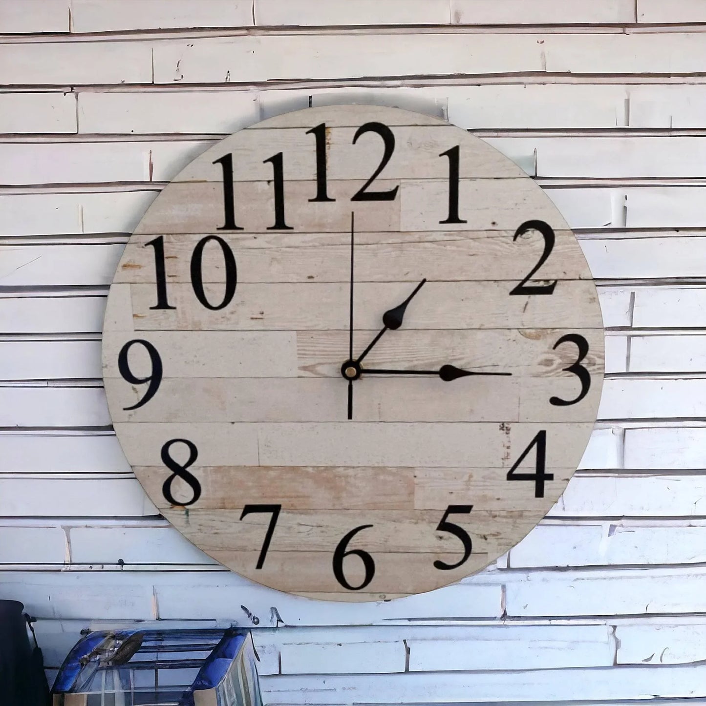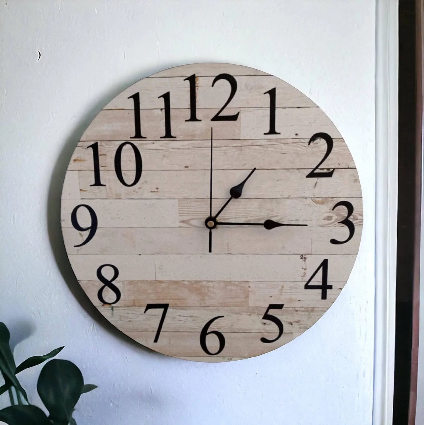 Clock Wall Rustic White Wash Timber 30cm 60cm Aussie Made