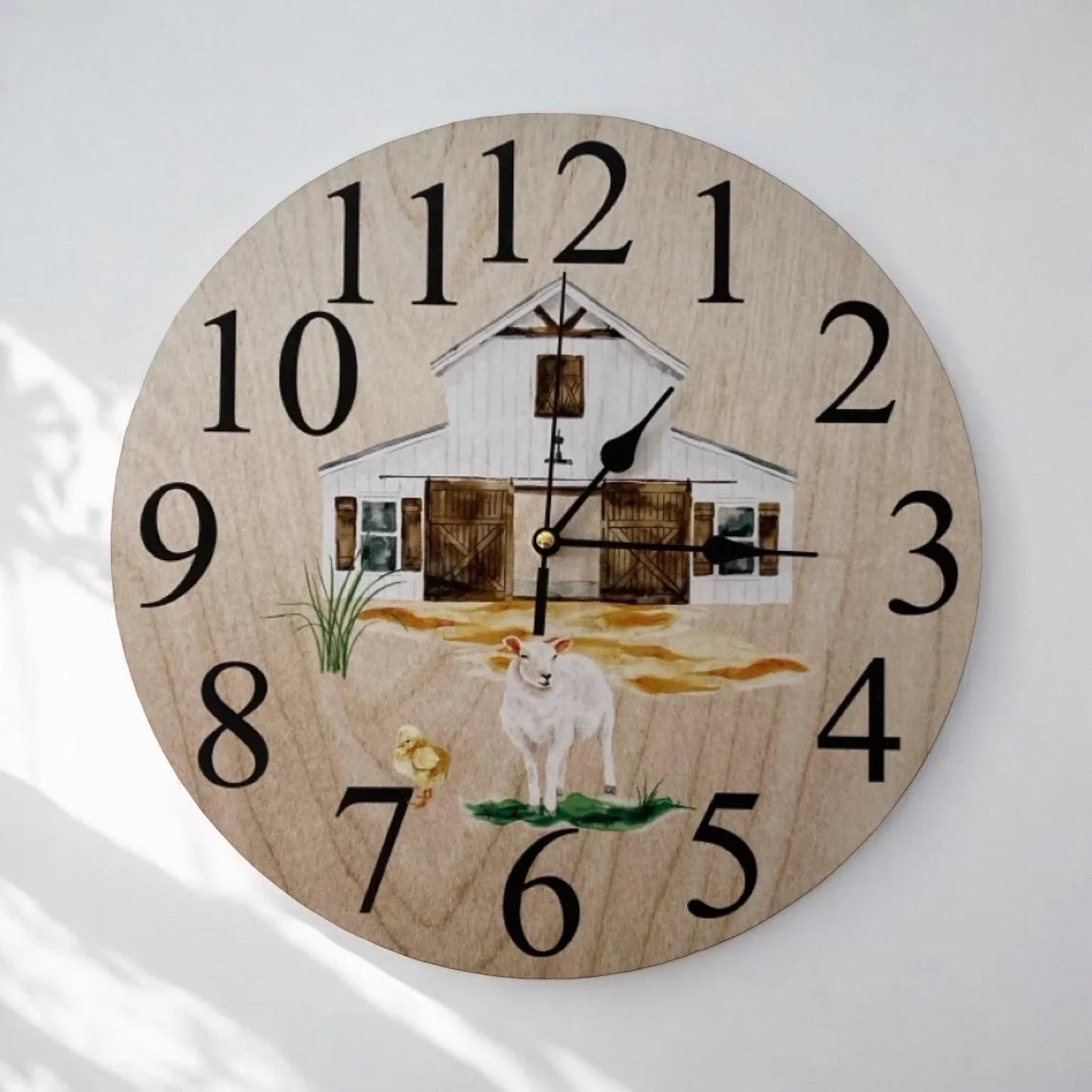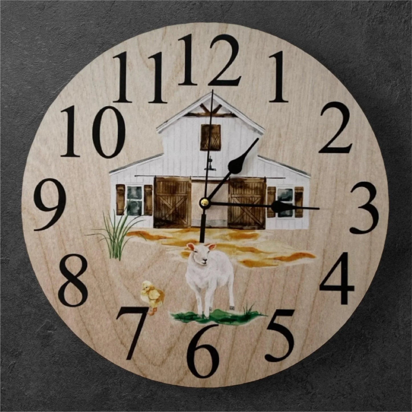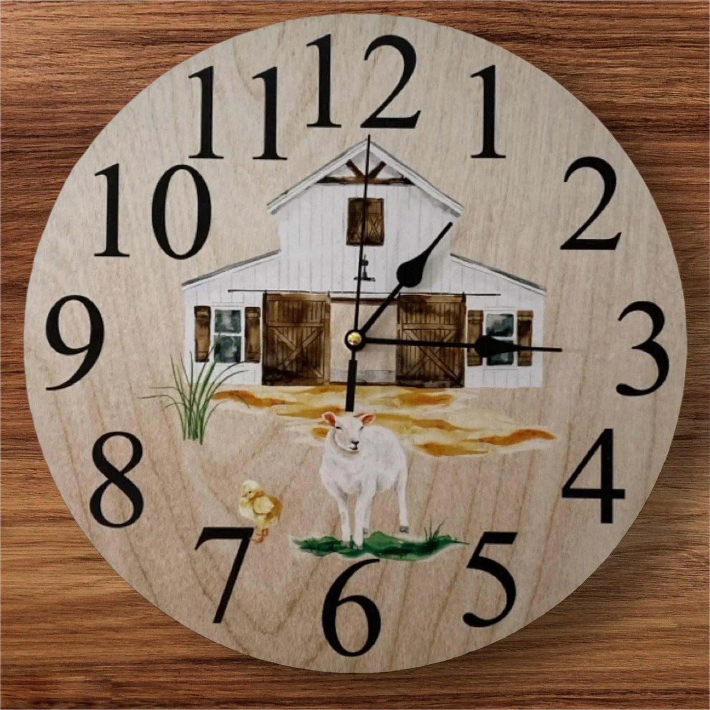 Elevate your country home decor with our Clock Wall Sheep Chicken Barn Farm Aussie Made Clock. Crafted with lots of love, this unique clock exudes rustic charm and is proudly made in Australia. Experience the perfect blend of style and functionality with reliable timekeeping from this country farmhouse-inspired piece.