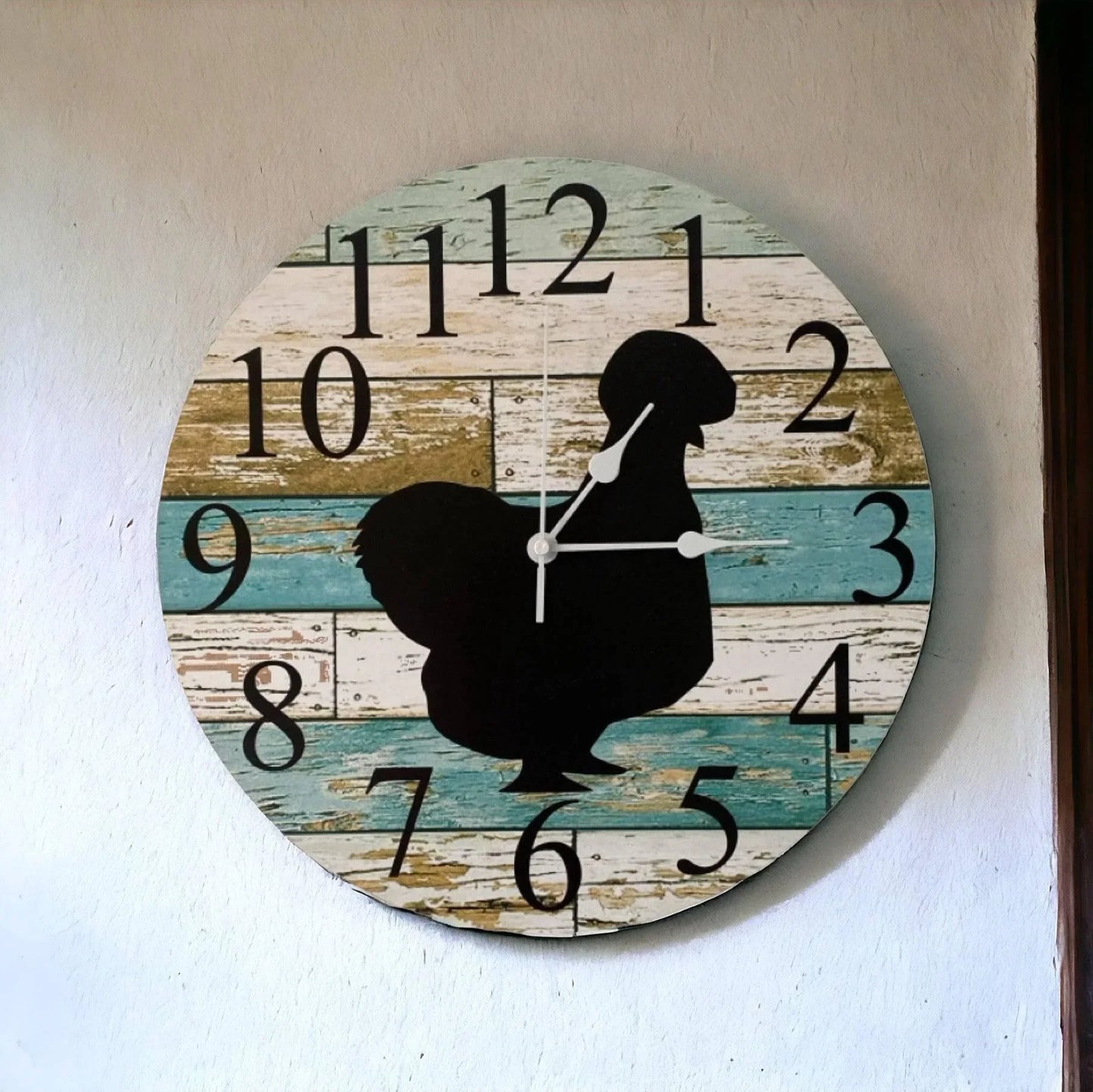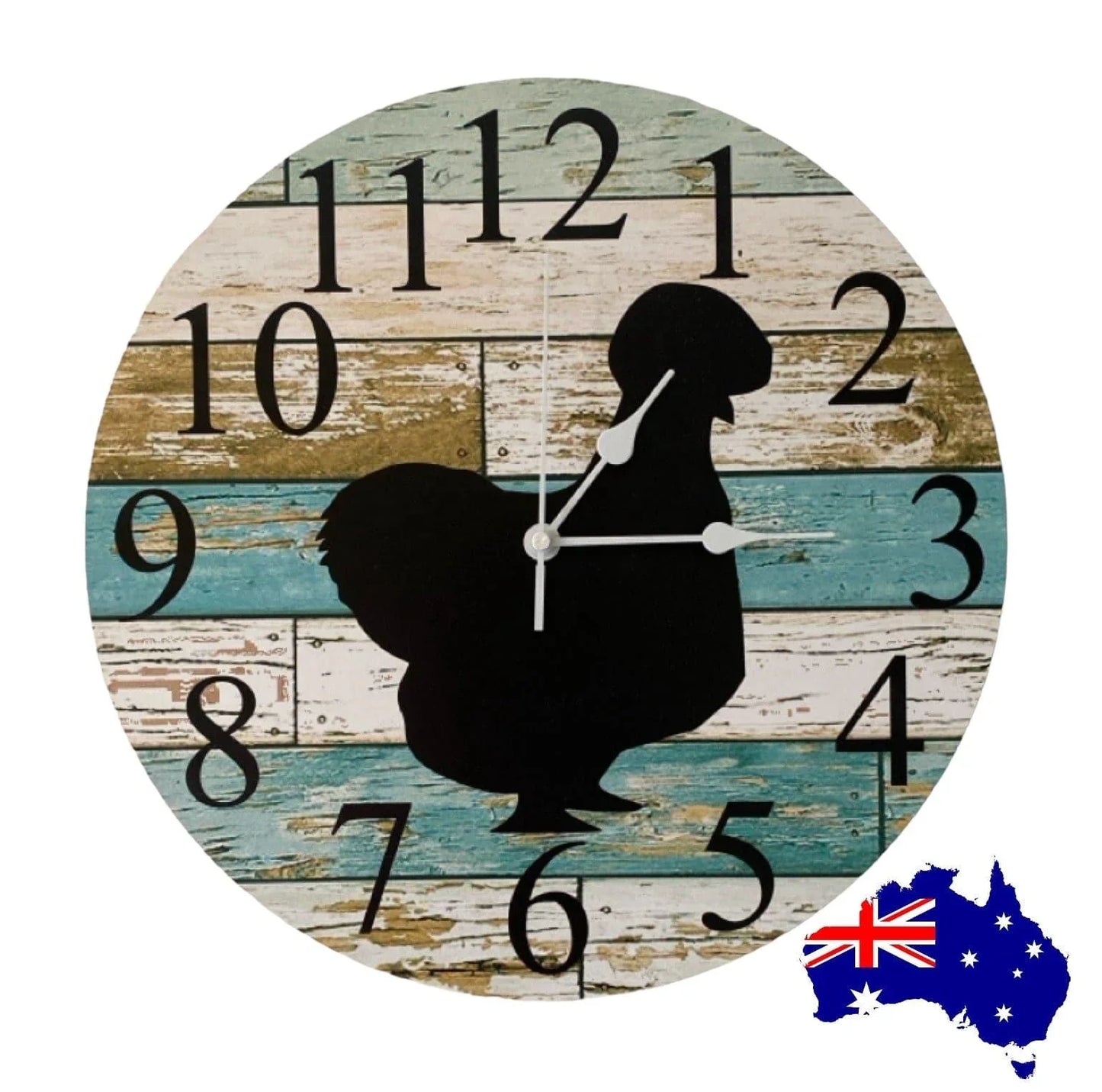 Bring farmhouse charm into your home with the Clock Wall Silkie Country Chicken Aussie Made. This clock will enhance the ambiance of any country style home.