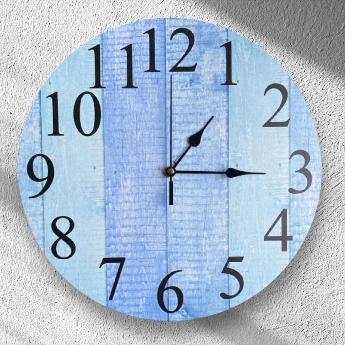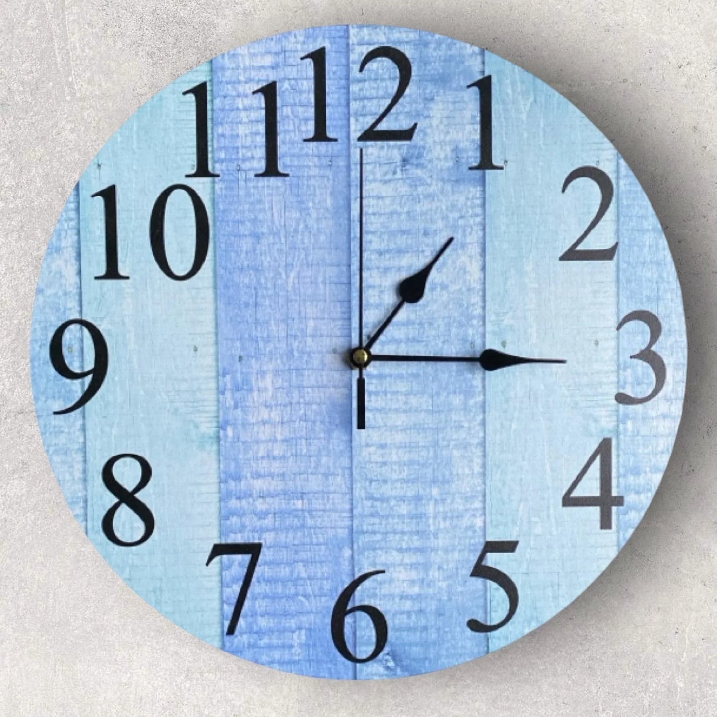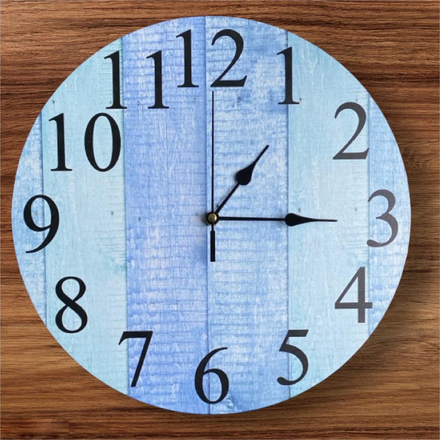 This beautiful clock features a rustic timber design adorned with the much loved Blue tones to suit any home decorating style. Handcrafted by a passionate Husband and Wife team who take great pride in designing and making this and many other unique clocks. By purchasing this clock, you're not only getting a stunning piece, but you're also supporting an Aussie Family! With free delivery available across Australia, this Wall Clock is a must-have for any home or business, adding the perfect touch to your decor. Made from MDF wood, quality quartz clock mechanism which uses x 1 AA Battery (No Battery Included)