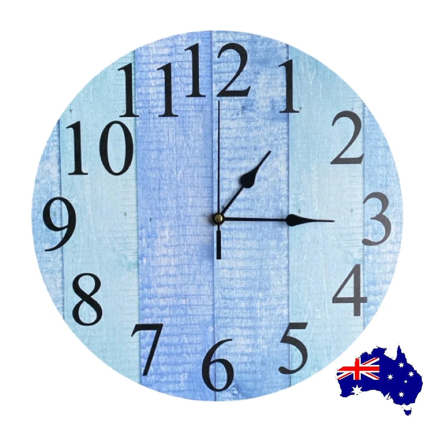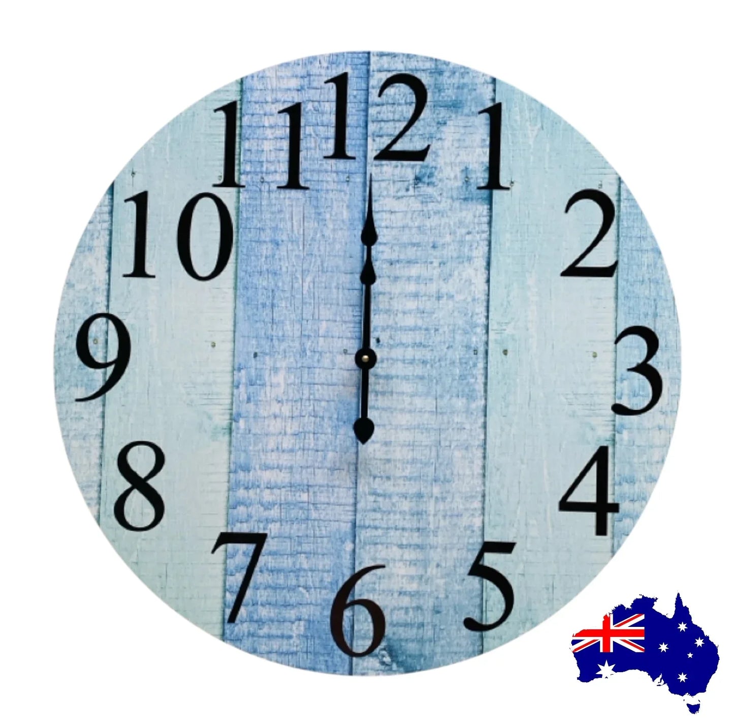 Clock Wall Timber Rustic Blue Aqua 30cm or 60cm Aussie Made