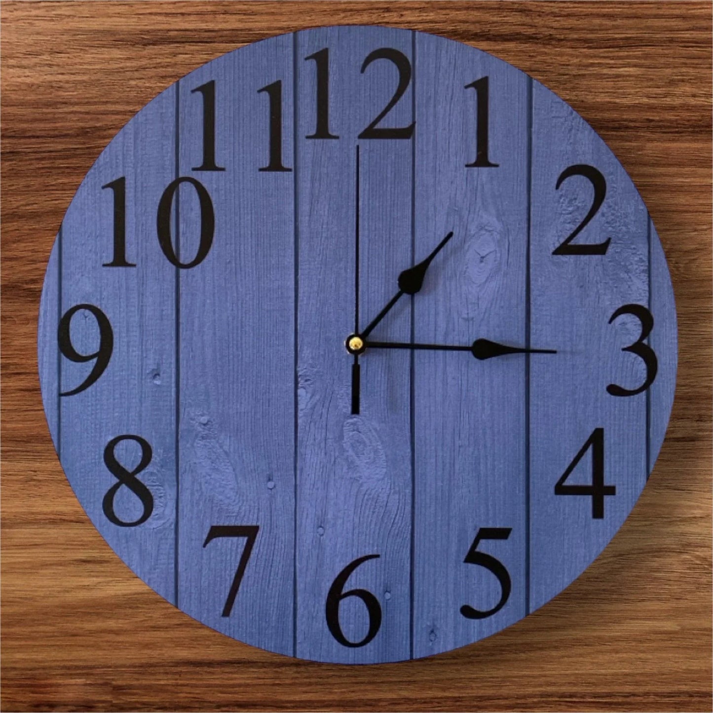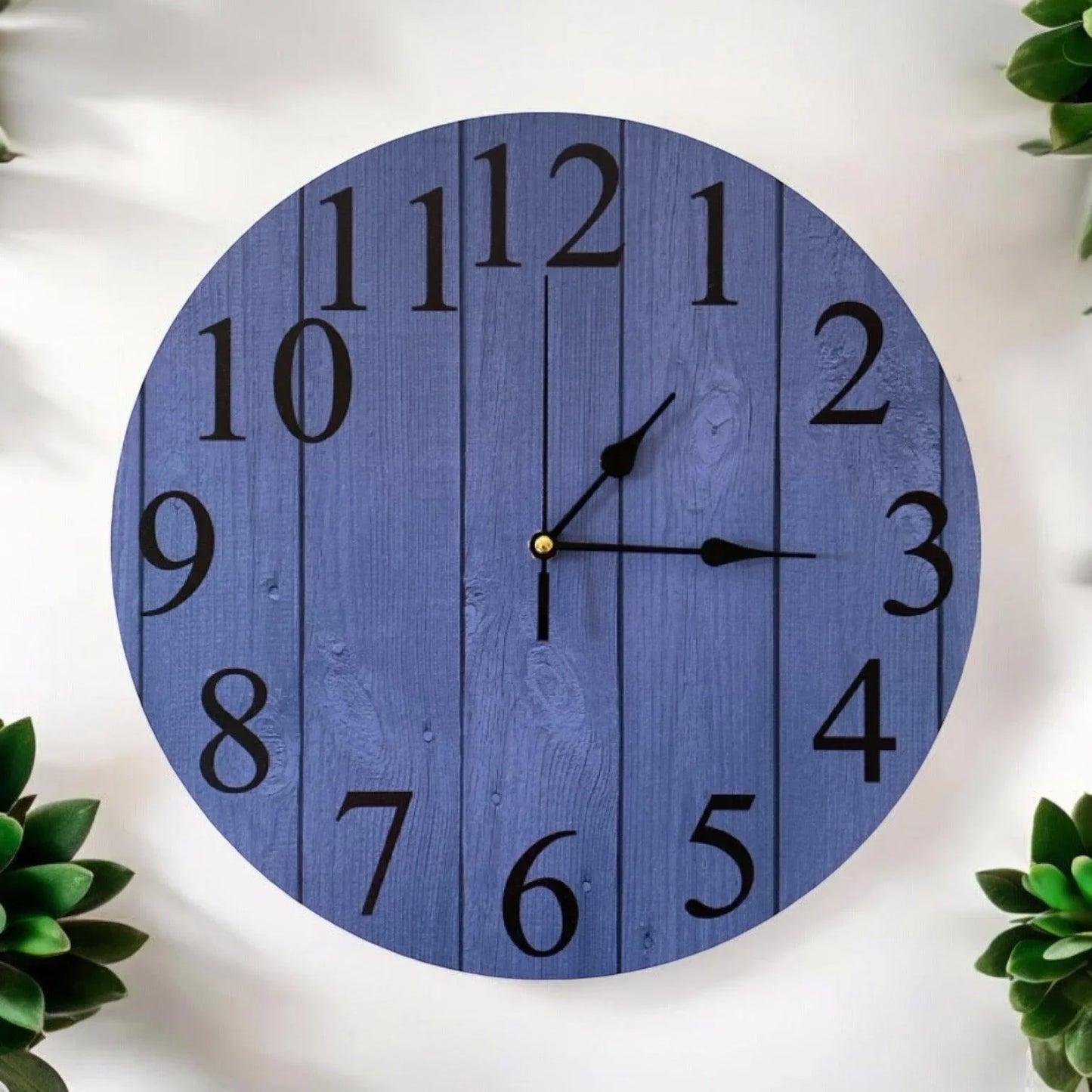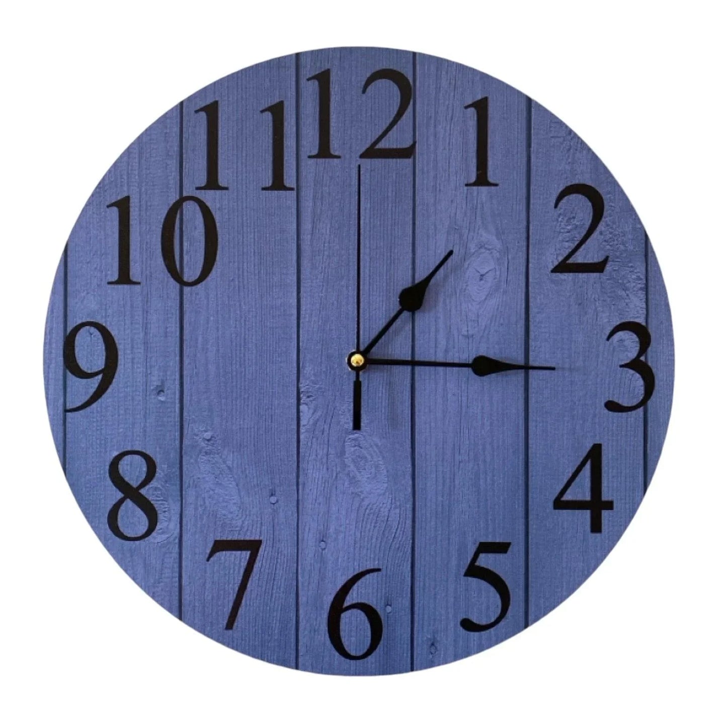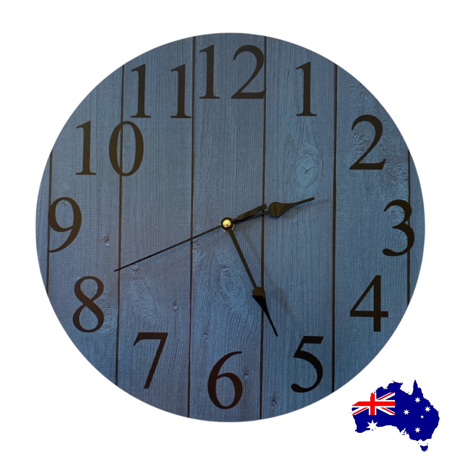 This beautiful clock features a rustic timber design adorned with the much loved Blue tones to suit any home decorating style. Handcrafted by a passionate Husband and Wife team who take great pride in designing and making this and many other unique clocks. By purchasing this clock, you're not only getting a stunning piece, but you're also supporting an Aussie Family! With free delivery available across Australia, this Wall Clock is a must-have for any home or business, adding the perfect touch to your decor. Made from MDF wood, quality quartz clock mechanism which uses x 1 AA Battery (No Battery Included)