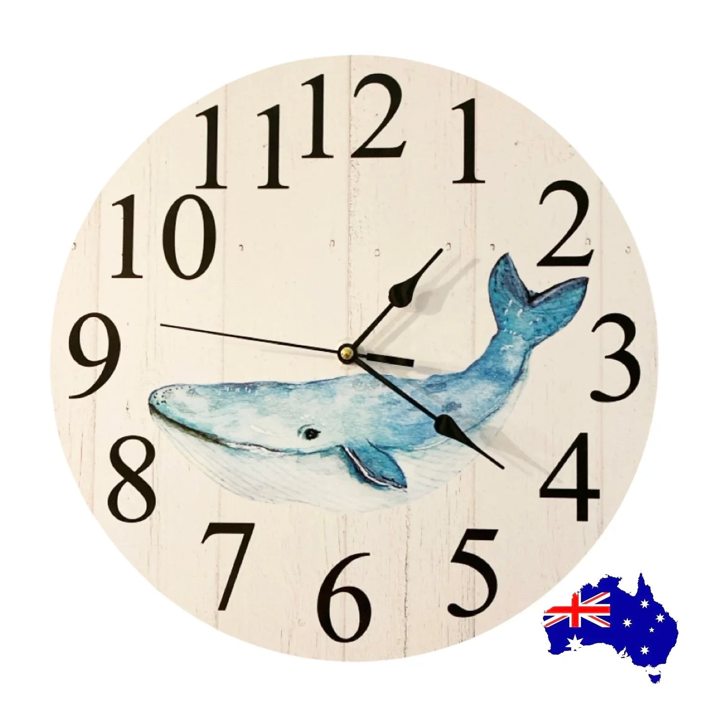 Embrace the rustic charm of our Aussie made Clock Wall Timber Whale, featuring a coastal beach house blue whale. Get that perfect seaside feel in your home today! This Clock is handcrafted and uniquely designed by a passionate Husband and Wife duo in Australia so your supporting an Aussie Family!! With free delivery available across Australia, this Wall Clock is a must-have for any home or business, adding the perfect touch to your decor. Made from MDF wood, quality quartz clock mechanism which uses x 1 AA Battery (No Battery Included)