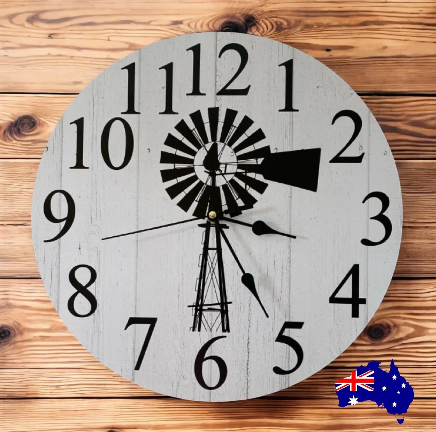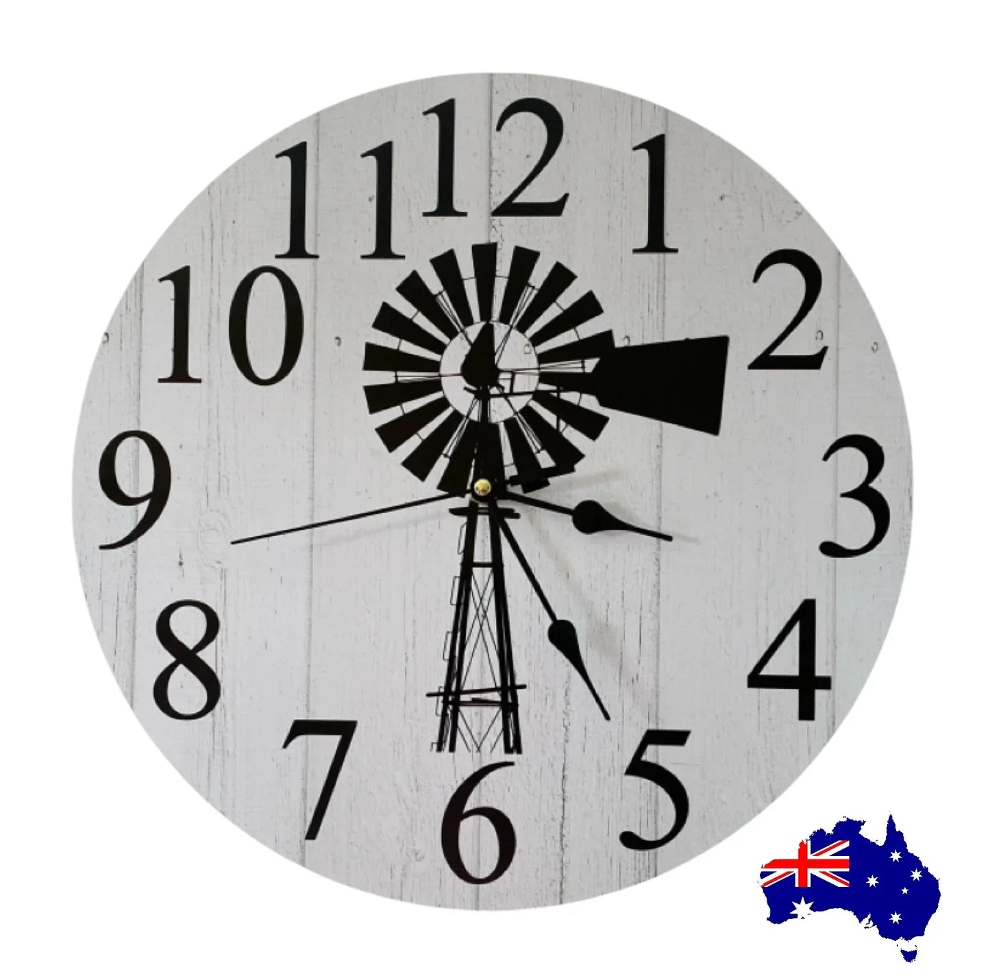 Clock Wall Windmill Country Farmhouse 30cm 60cm Aussie Made