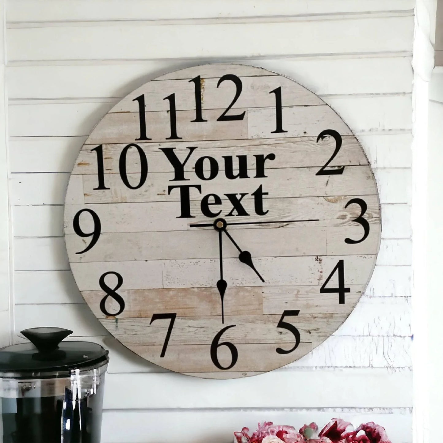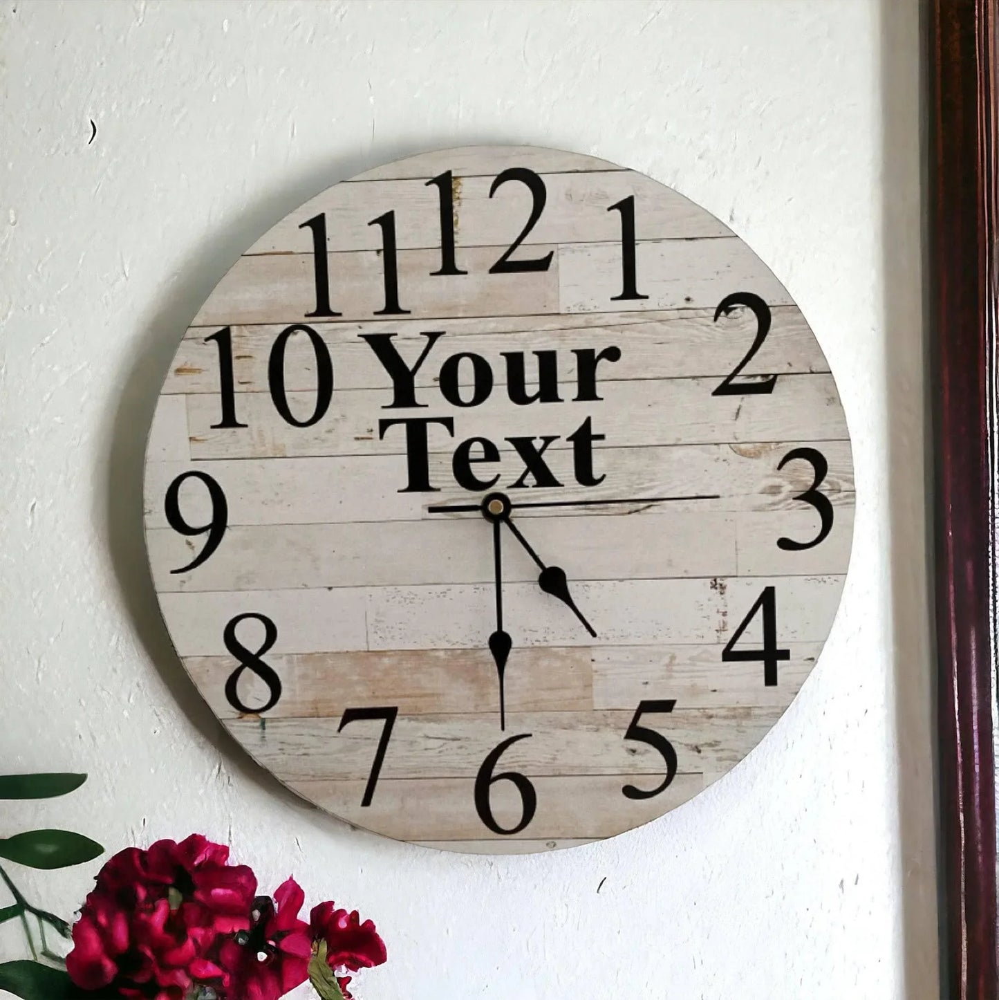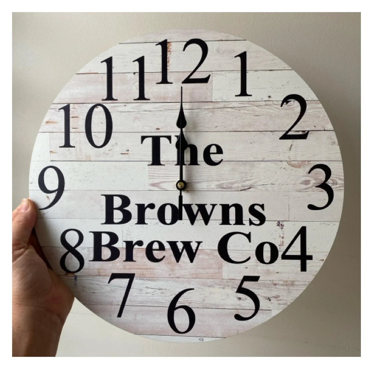Unleash your creativity with endless possibilities for your personalised clock! From "Mums Kitchen" to "Coffee Lover" to "Dads Man Cave" or add your favorite photo the options are endless and limited only by your imagination. Keep in mind too much text looks crowded so please keep your custom text to a minimum.