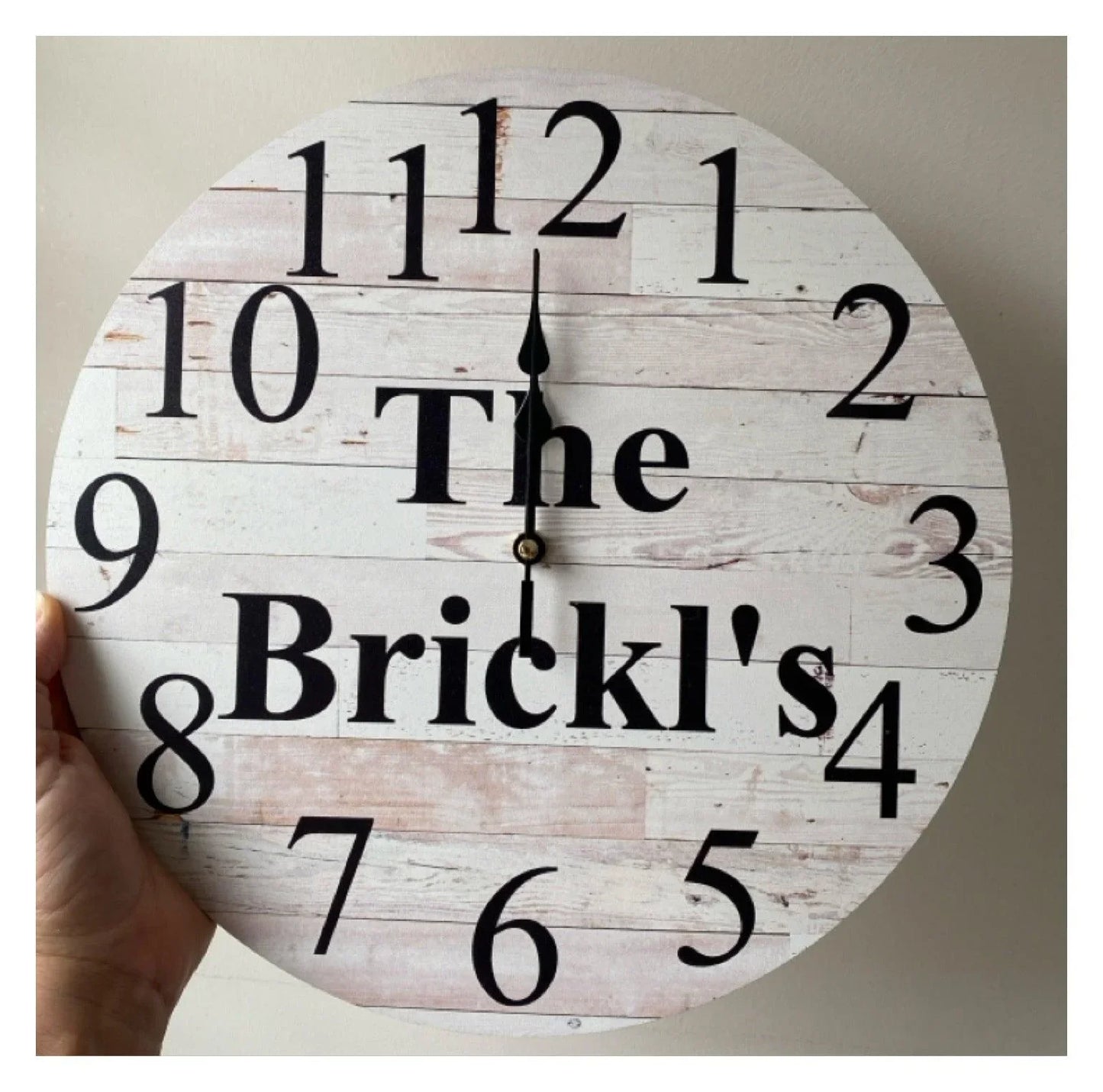 This stunning Customised clock is handcrafted and uniquely designed by a passionate Husband and Wife duo in Australia so your supporting an Aussie Family!! With free delivery available across Australia, this Wall Clock is a must-have for any home or business, adding the perfect personalised touch to your decor. Made from MDF wood, quality silent quartz clock mechanism which uses x 1 AA Battery (No Battery Included)