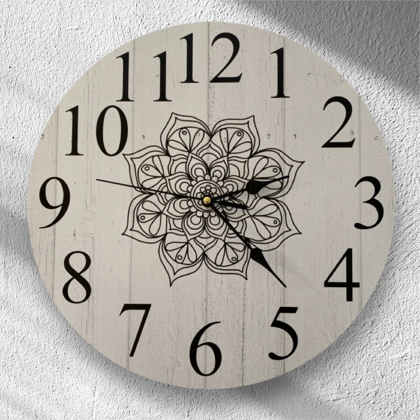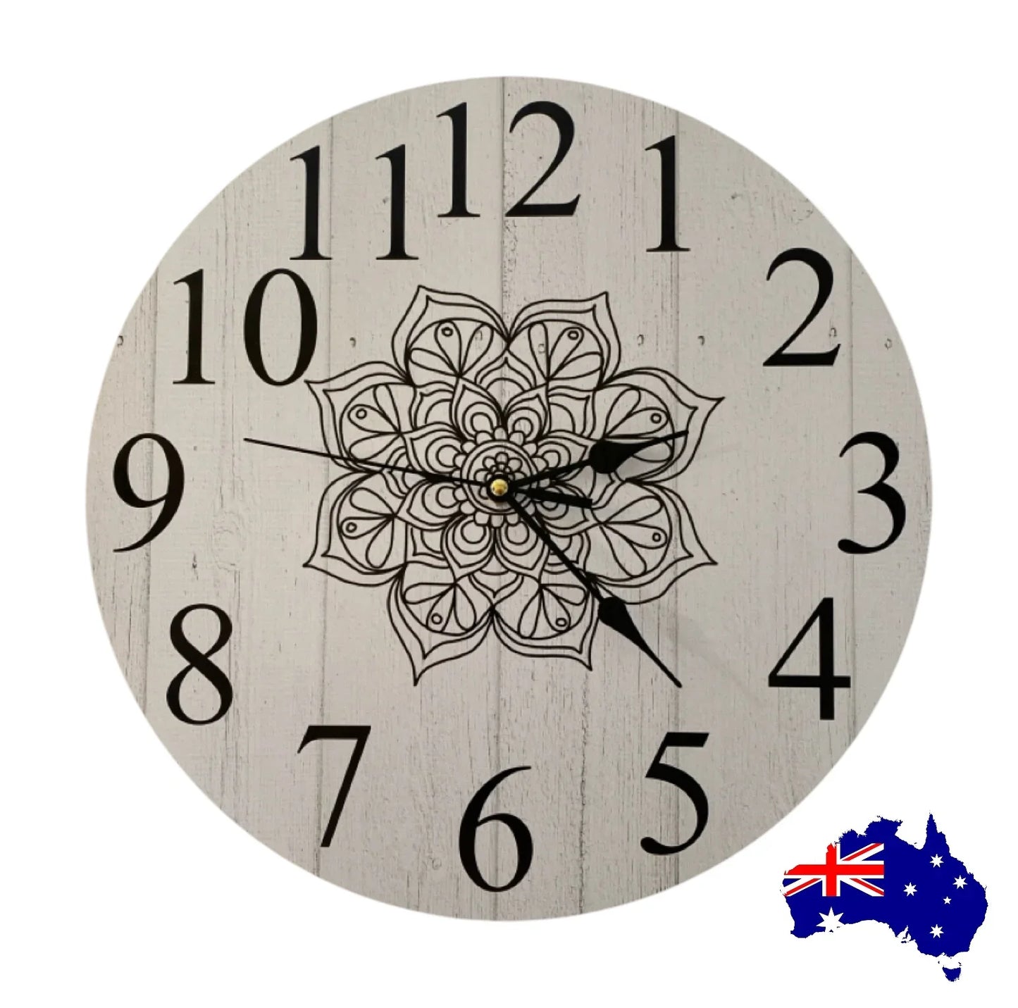 Embrace the wonderful Mandala charm of our Aussie made Clock Wall Wooden White Wash style, featuring a stunning timber design. Get that perfect boho bohemian feel in your home today! This Clock is handcrafted and uniquely designed by a passionate Husband and Wife duo in Australia so your supporting an Aussie Family!! With free delivery available across Australia, this Wall Clock is a must-have for any home or business, adding the perfect touch to your decor. Made from MDF wood, quality quartz clock mechanism which uses x 1 AA Battery (No Battery Included)