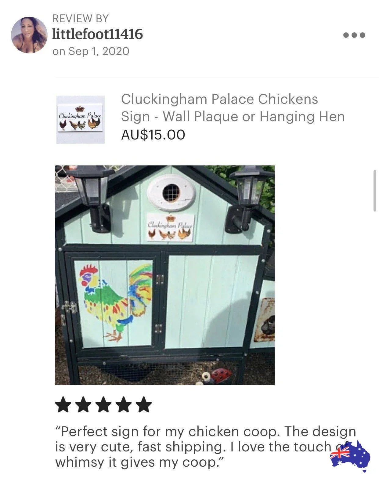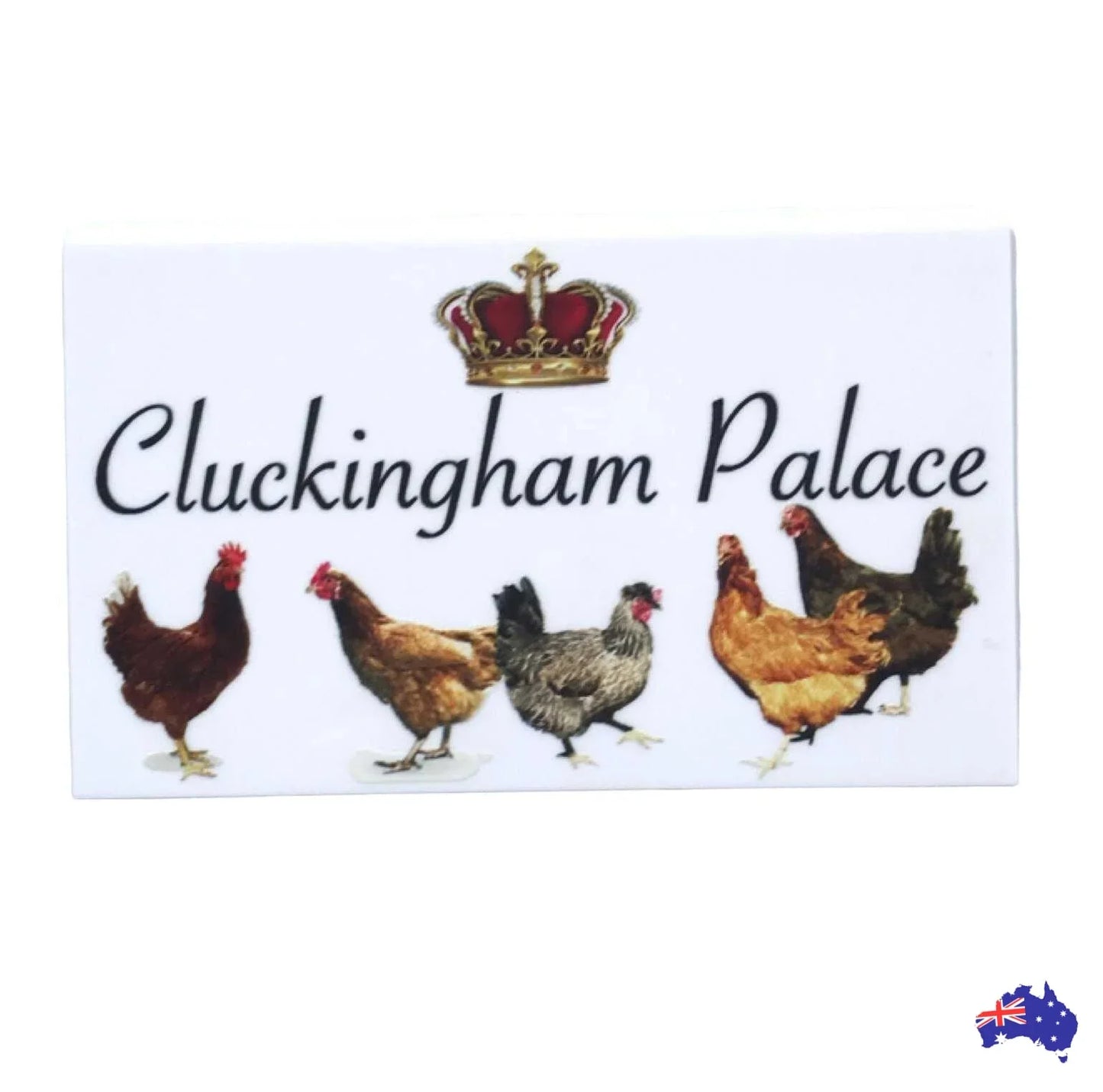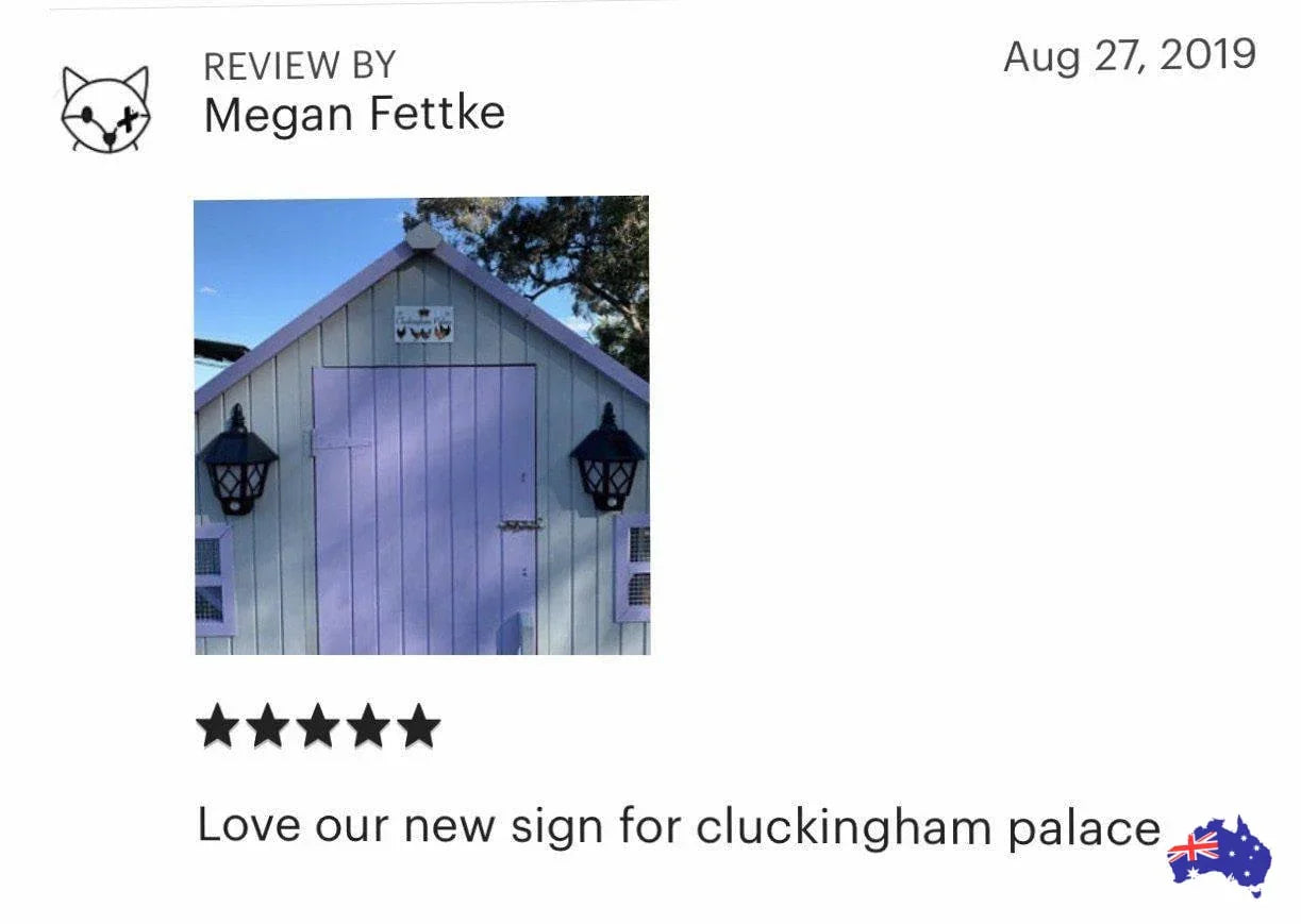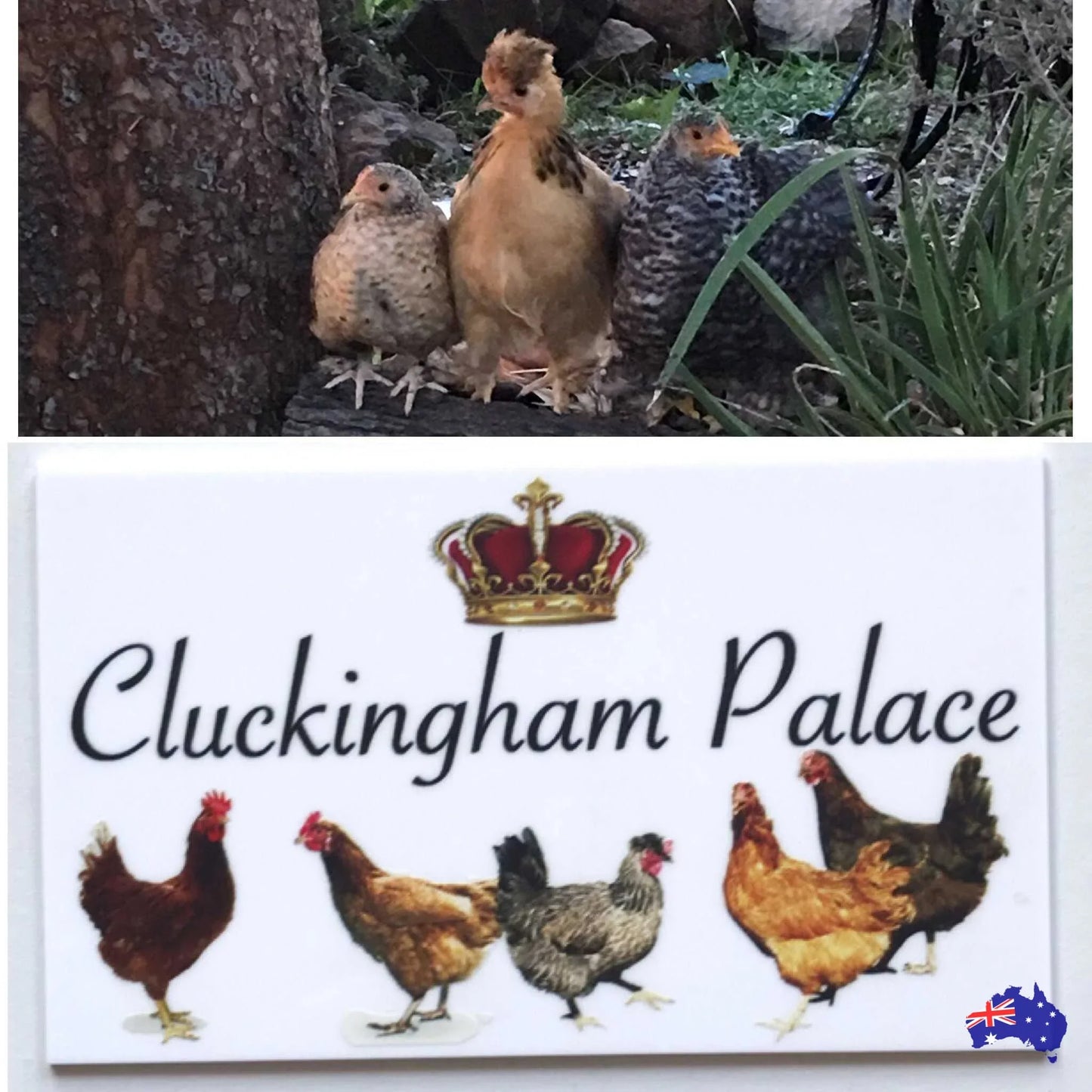 Add a touch of royal charm to your chicken coop with the Cluckingham Palace Sign! Your beloved feathered friends will love residing in this luxurious "palace"! Great unique one of a kind gift idea for any backyard chicken owner