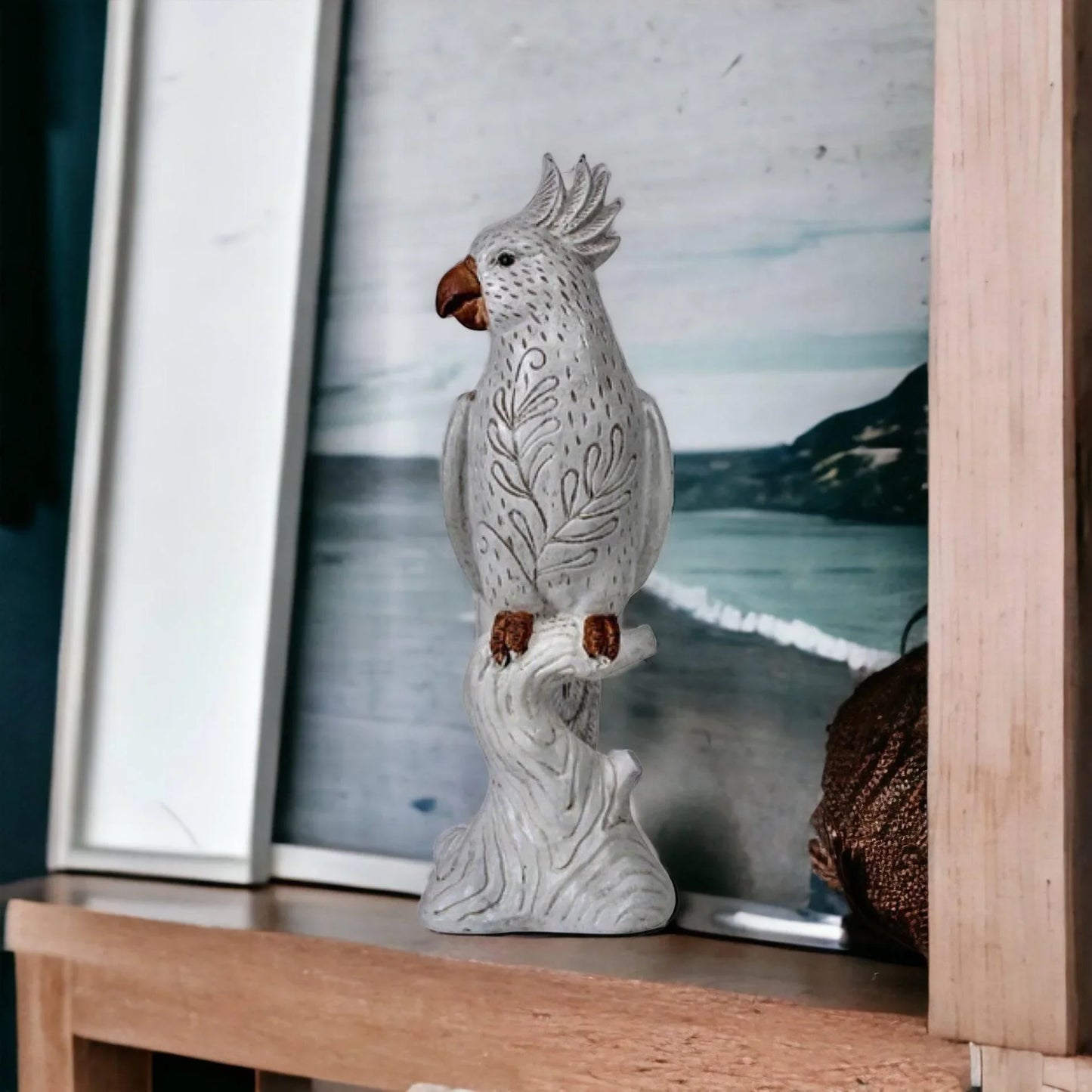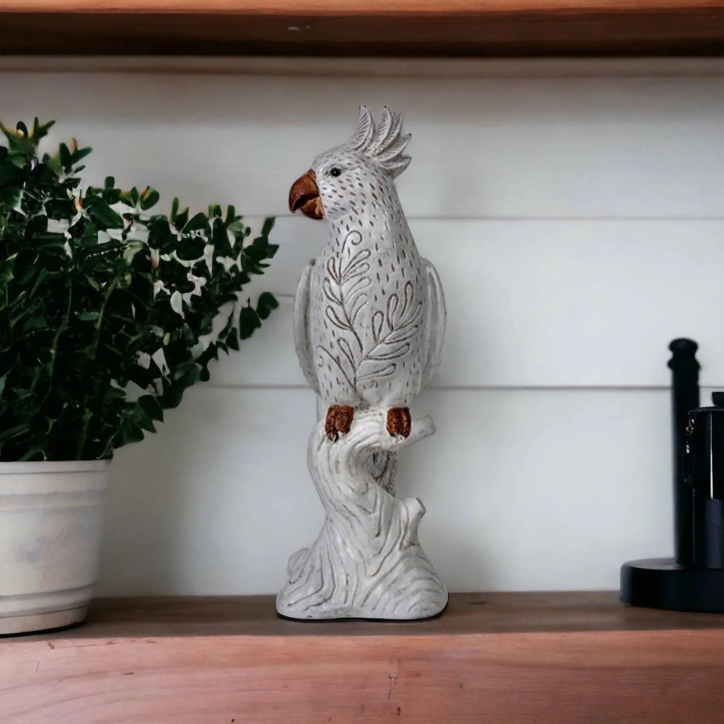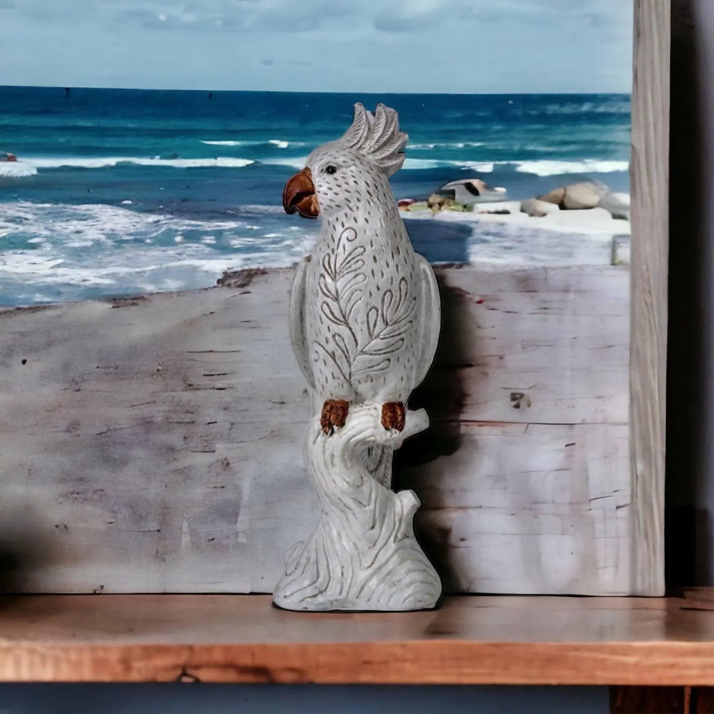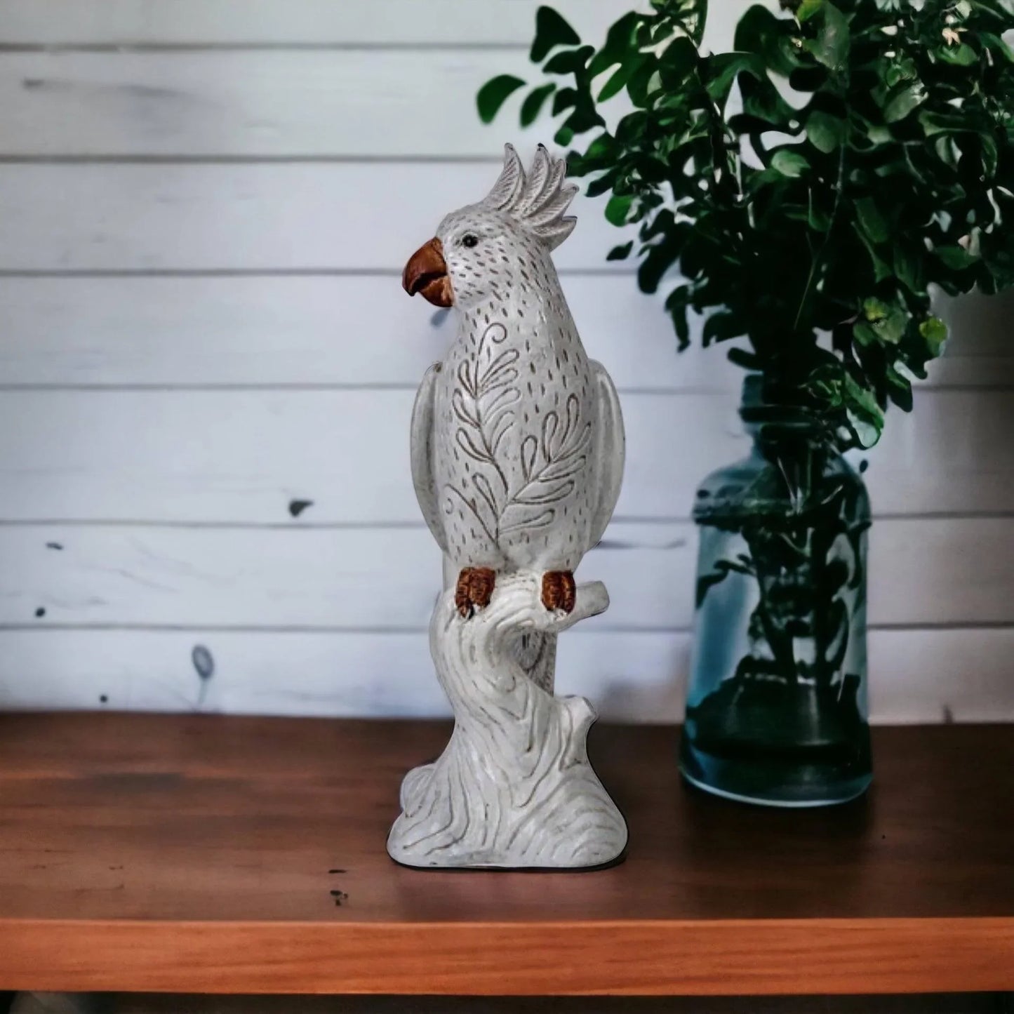 This majestic Cockatoo Parrot White Bird decoration looks stunning on display, adding an element of the Coastal Hamptons, Aussie Country Farmhouse to any home. Its size of 10cm x 11cm x 30.5cm makes it a perfect addition to any decor.