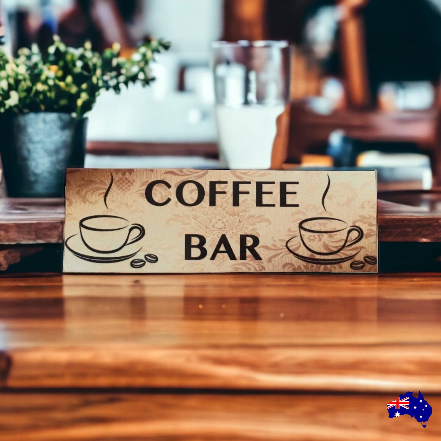Transform your kitchen into a cozy café with our charming Coffee Bar Sign. Showcase your love for coffee and create a warm atmosphere for your guests. Made of high-quality materials, this sign is durable and easy to hang. Perfect for home or commercial use.