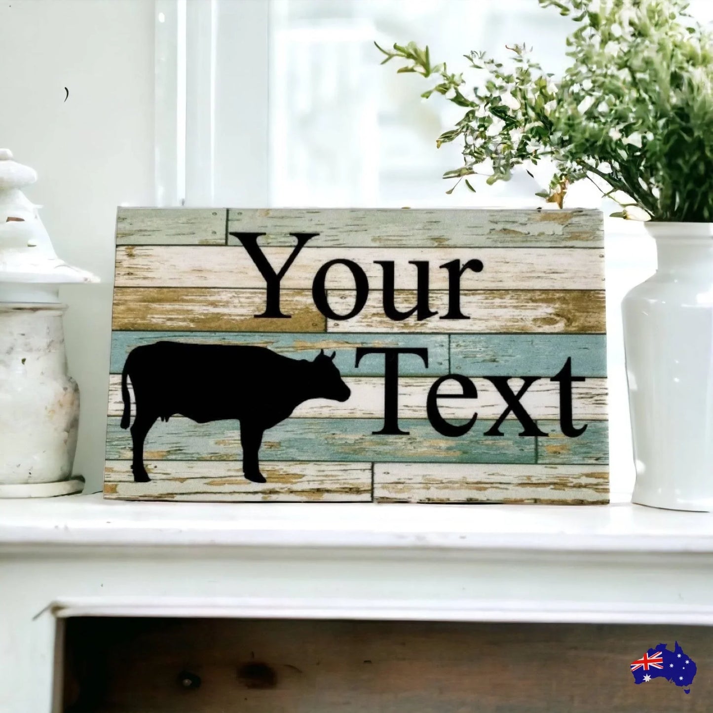 Capture the essence of your farm with our Cow Blue Personalised Custom Farm Sign! Experience the joy and pride of owning a one-of-a-kind sign that showcases your love for cows and farm life in a way that is uniquely yours. With your own wording, you can create a truly special and personalised piece of art that will make a statement on your farm or give as a gift. Order yours today and add a touch of charm and personality to your home!