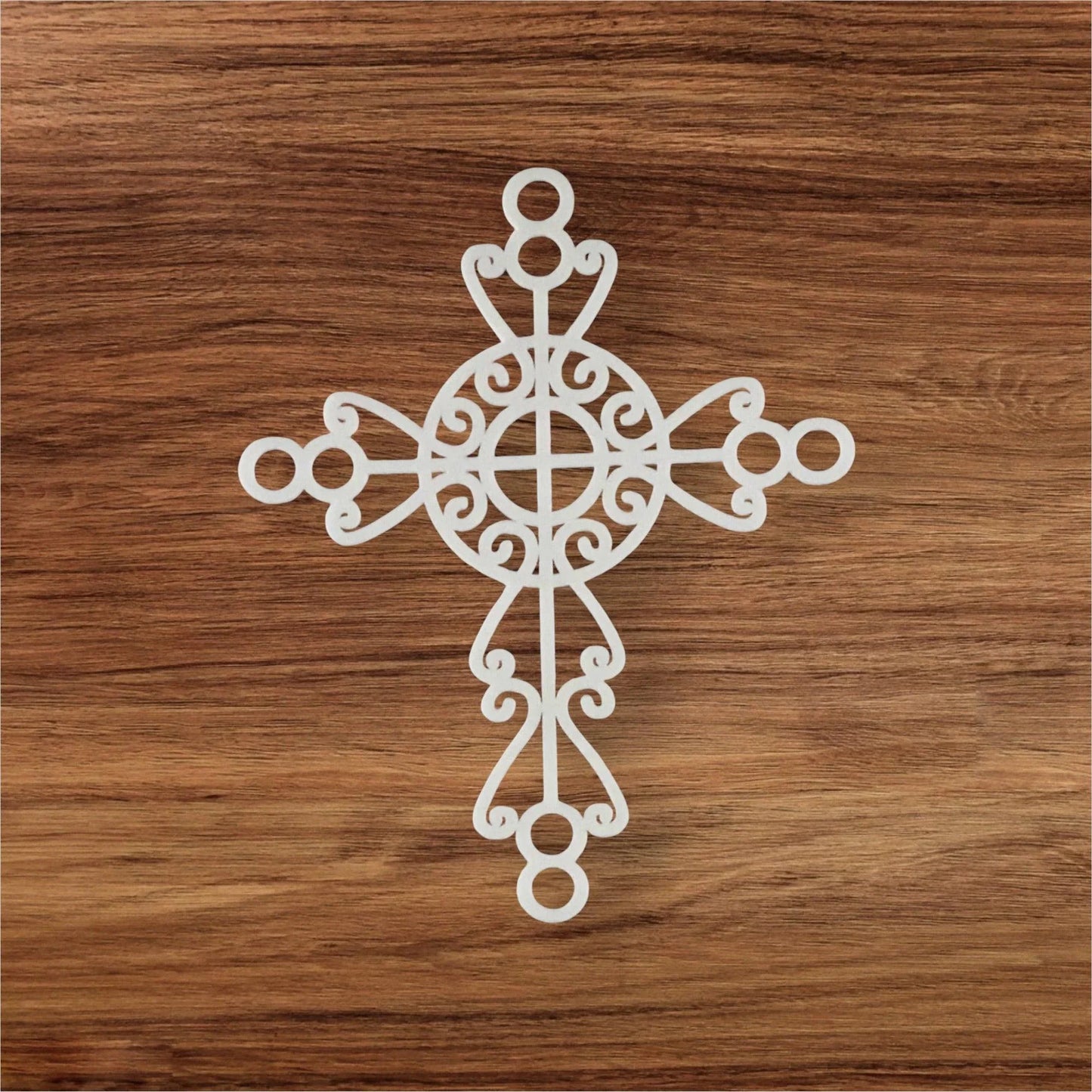 Elevate any indoor or outdoor space with our Cross White Acrylic Decor. Crafted with precision in Australia by an Aussie, this laser cut cross is the perfect addition to any wall or surface. Made from high quality acrylic material, it exudes scroll elegance and style.