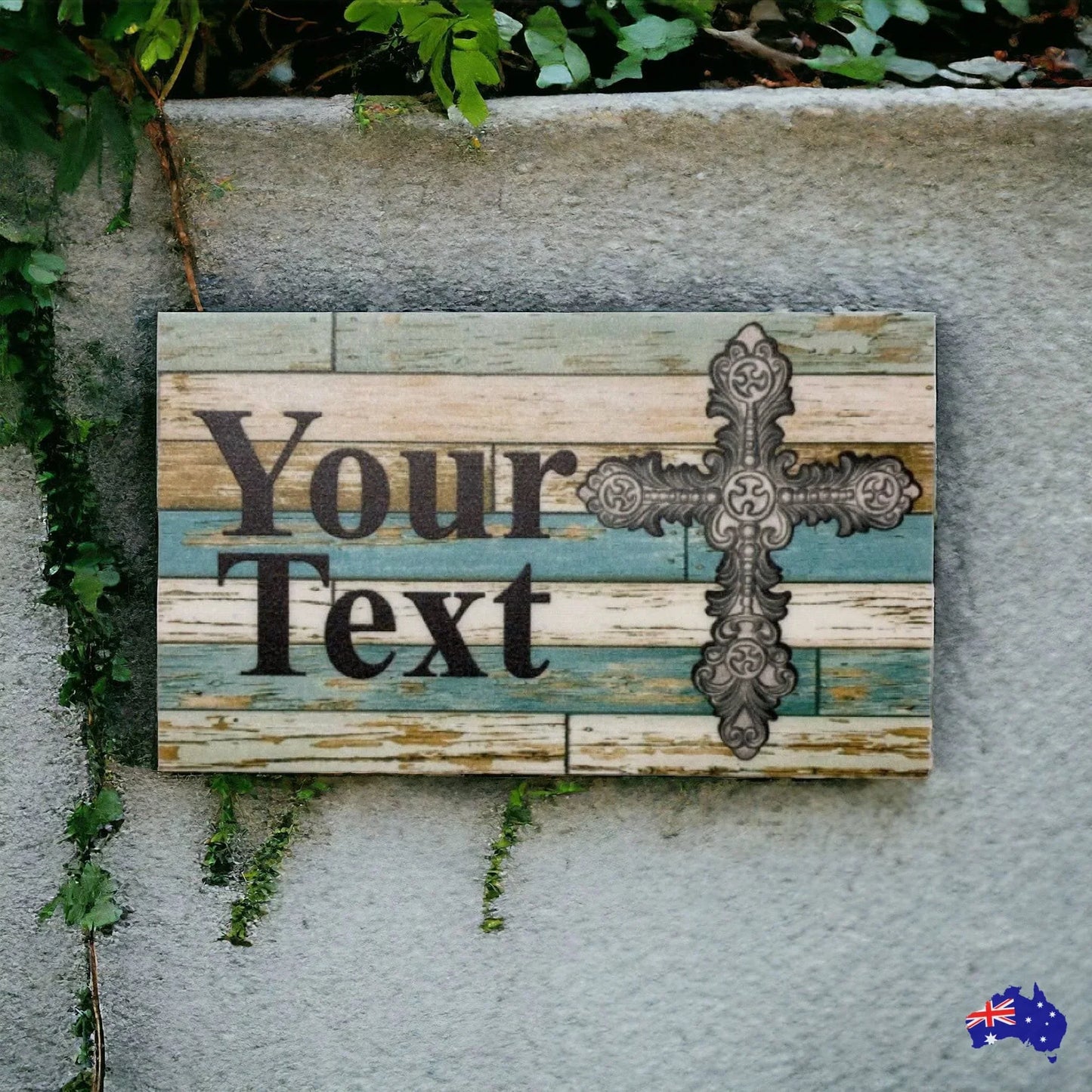 Celebrate your faith and honor your loved ones with this personalised custom sign depicting a cross - the enduring symbol of religious devotion. Keep the memory of your loved ones alive with this unique and meaningful addition to your home decor.