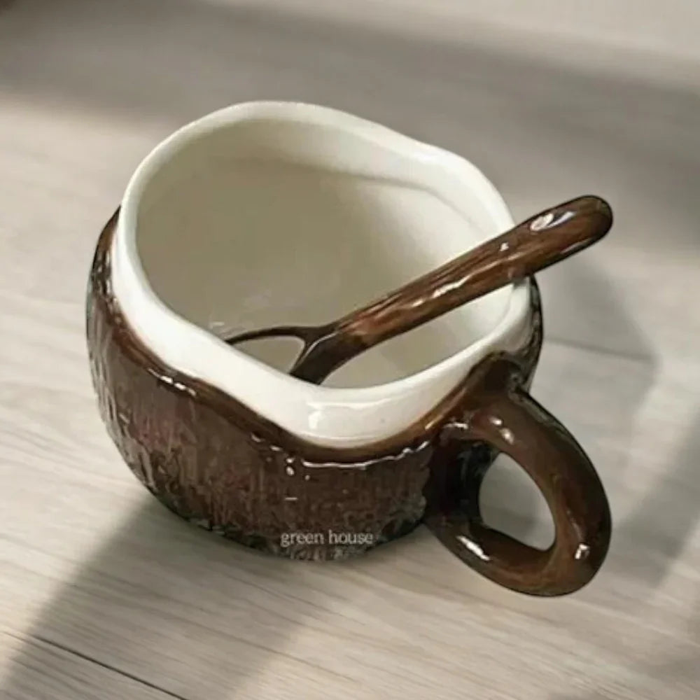 Cup Mug Spoon Coconut Coconut Shell Ceramic Tropical